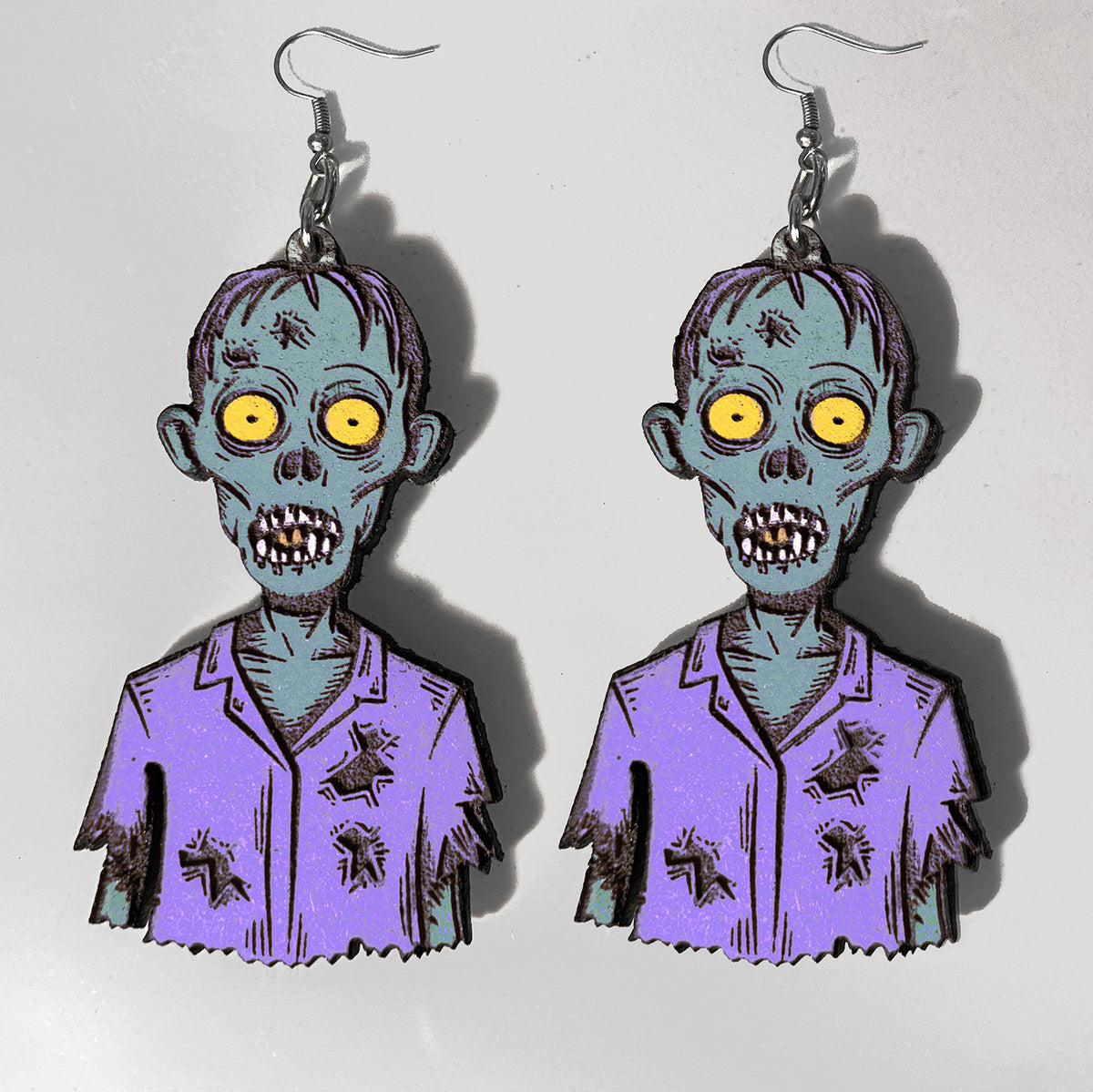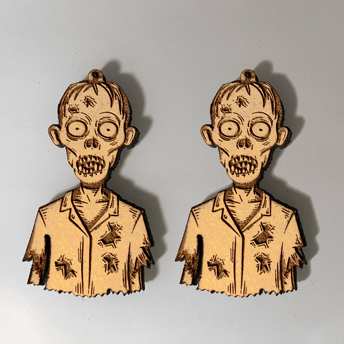 Perfect for horror lovers, these zombie earrings, laser cut from medium hardwood, add a playful yet spooky touch to your look, whether it's Halloween or a casual day.