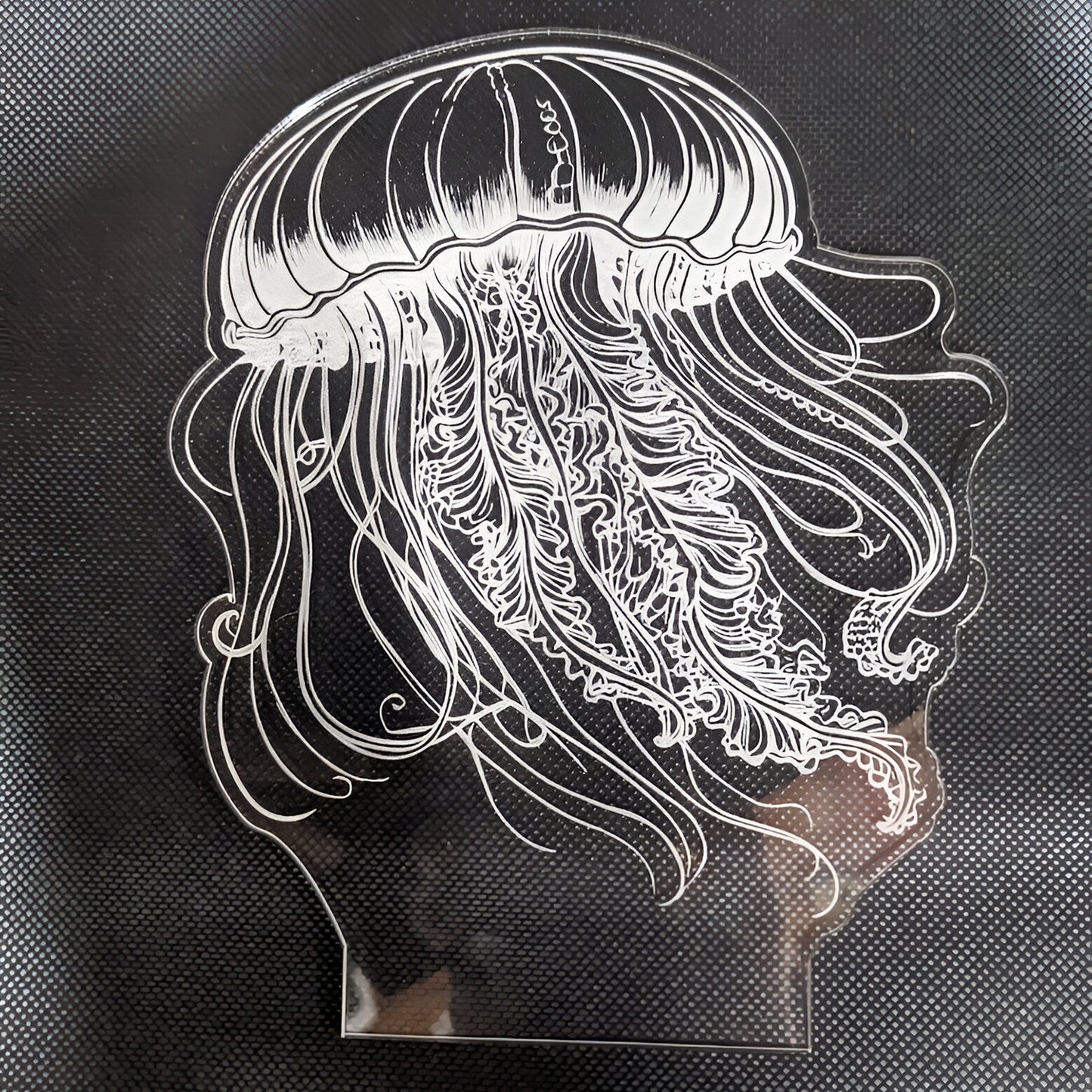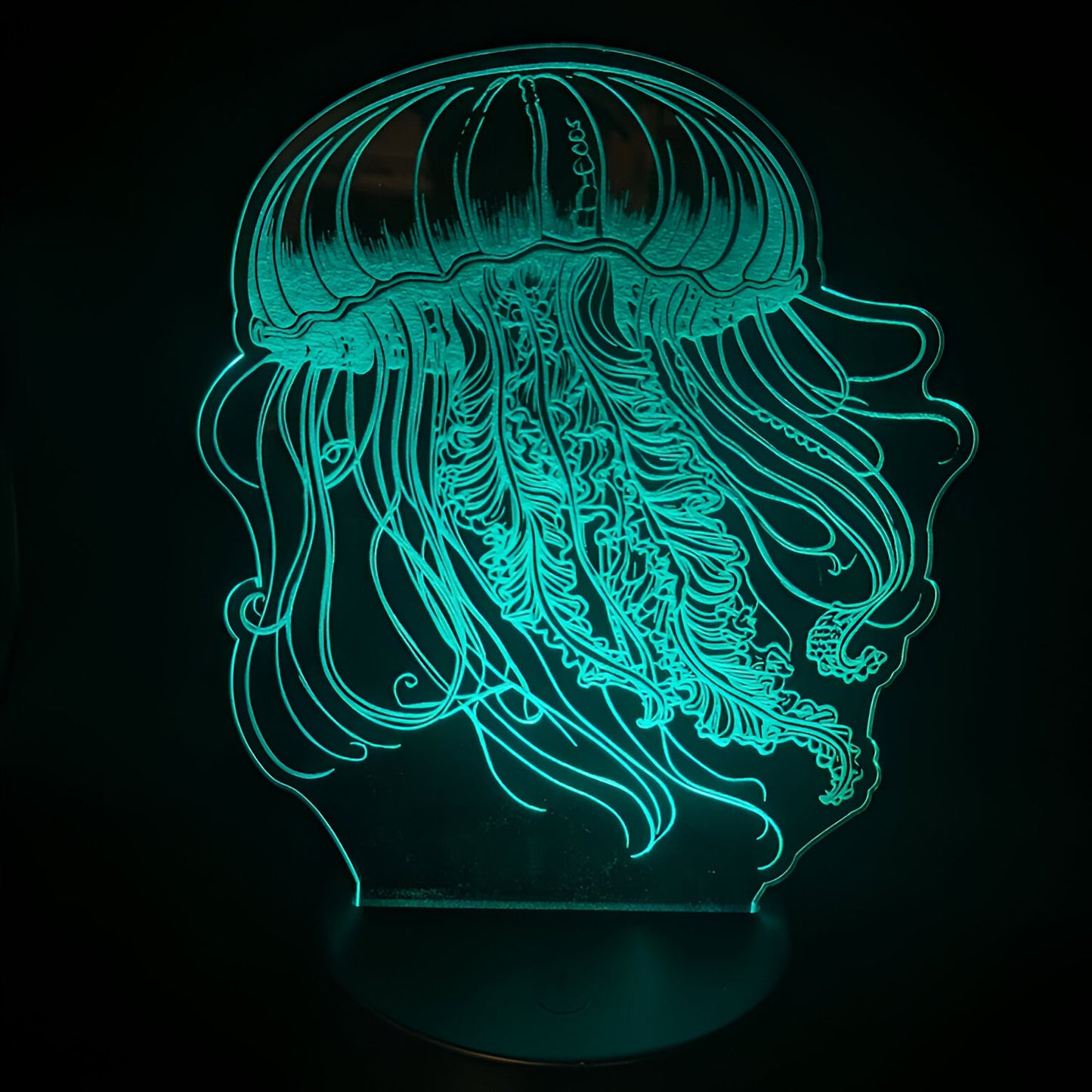 Dive into the depths of your imagination with this enchanting laser engraved acrylic insert for an edge lit LED night light. The intricate design showcases a graceful jellyfish, its tentacles flowing effortlessly through the water. The soft glow of the LED base illuminates the jellyfish's delicate details, creating a mesmerizing and calming ambiance. Perfect for adding a touch of oceanic wonder to your bedroom or living room, this insert will transport you to an underwater paradise every night.