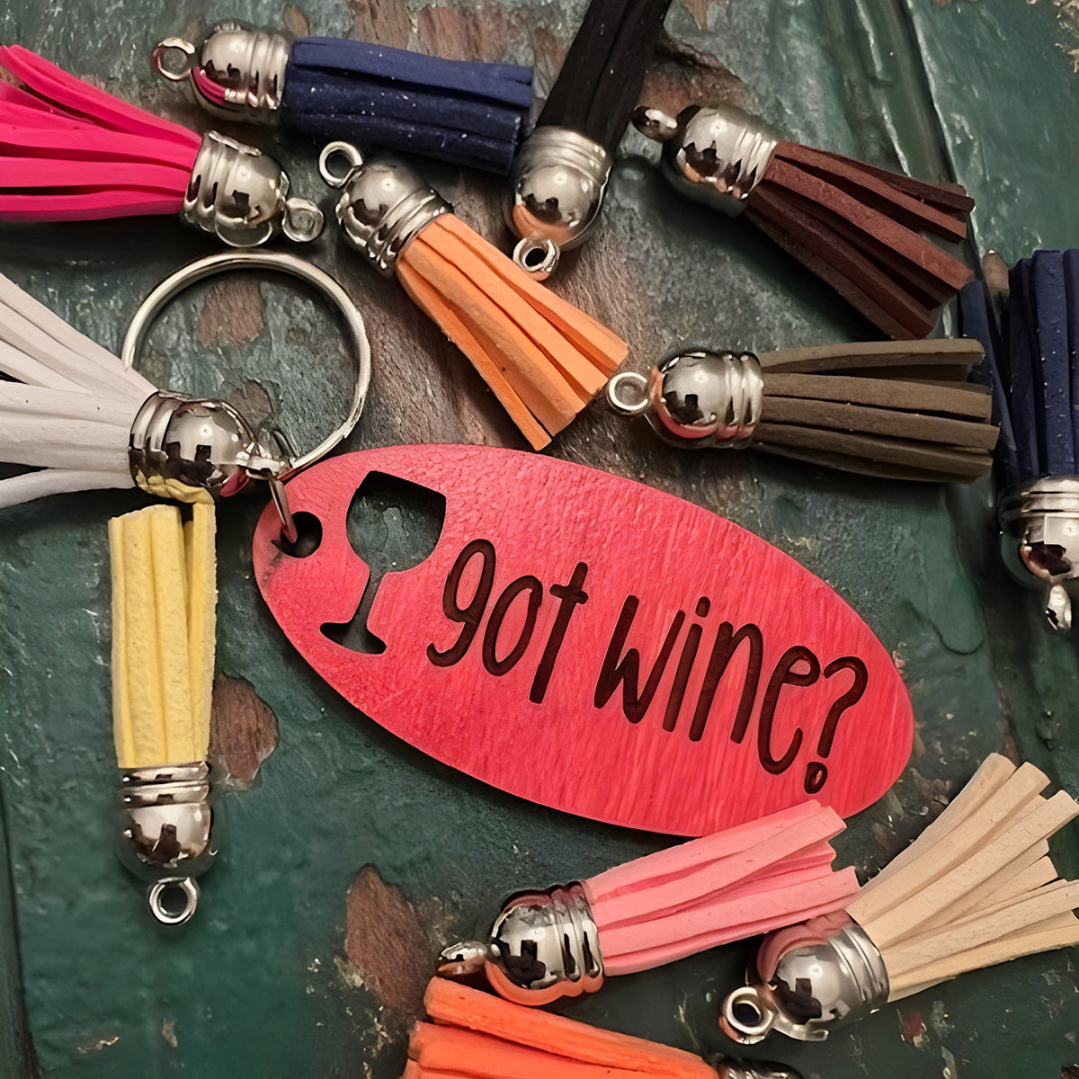 Fun keychain for the wine lover. Fast run time for last-minute gift - just tie around a bottle or onto a gift bag and you're all set.
