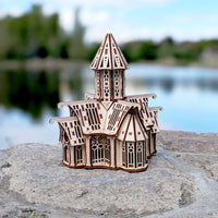 This Gothic Castle model embodies the grandeur and mystique of medieval architecture, featuring intricate details that transport you to a bygone era of knights and nobility. Ideal for enthusiasts of medieval history, collectors of architectural models, or those with a penchant for fantasy decor, it serves as a captivating centerpiece for shelves, desks, or display cases.
