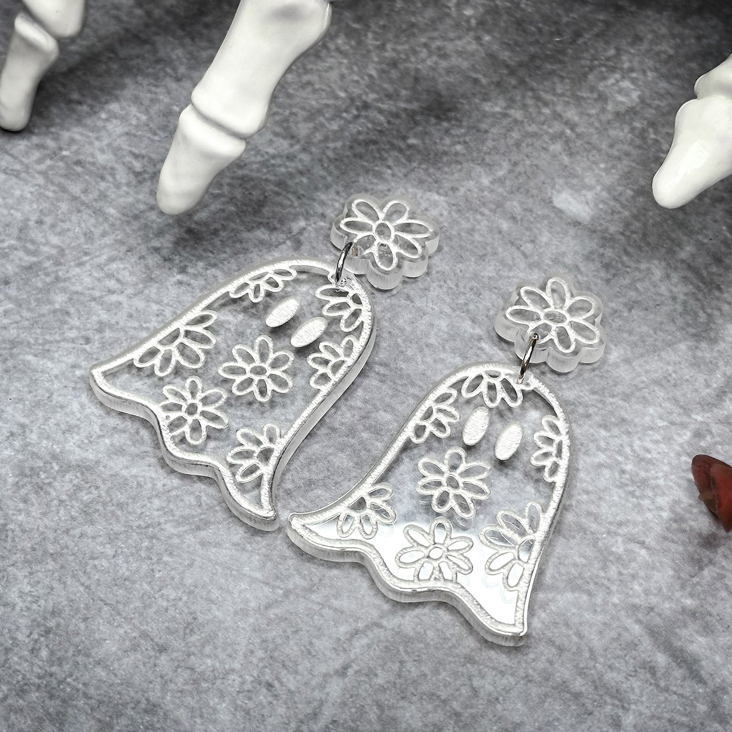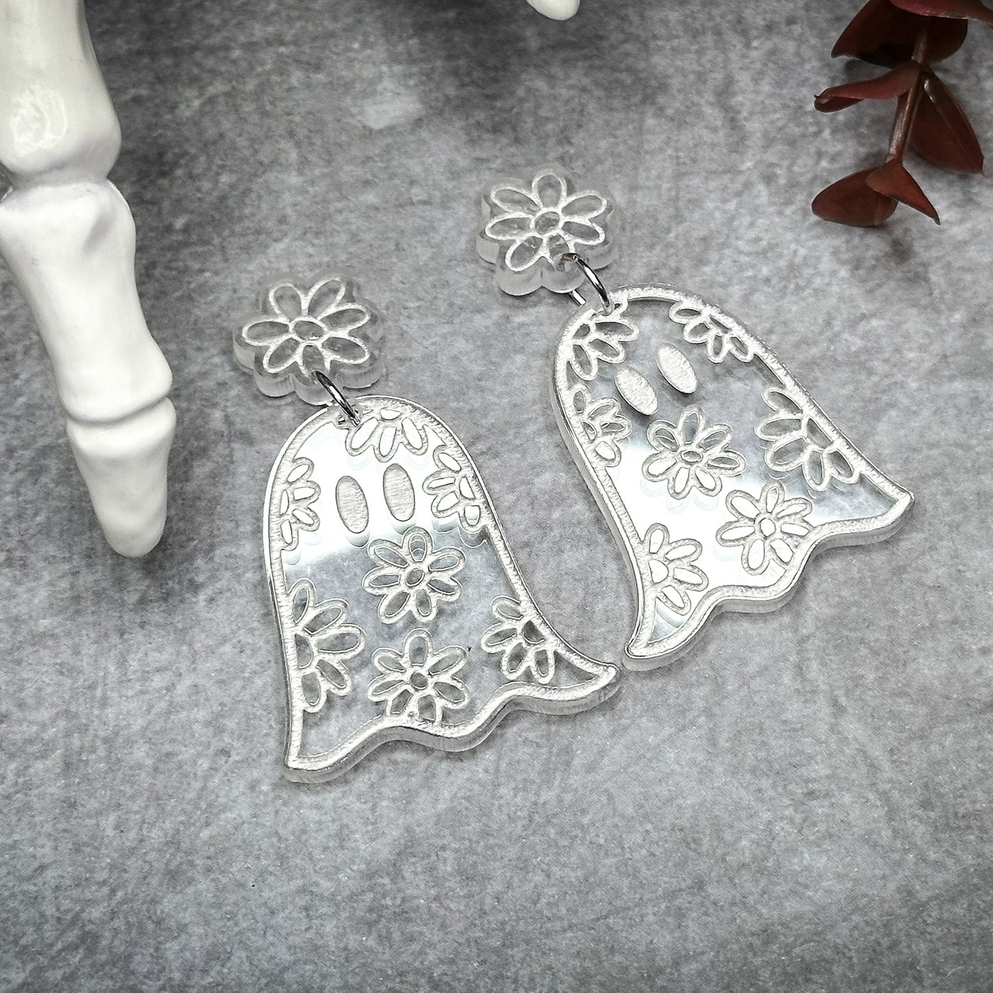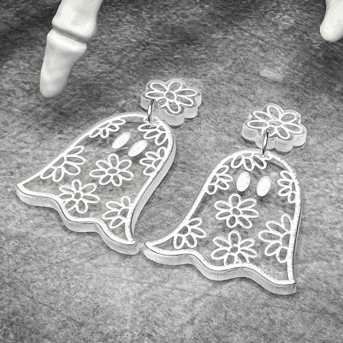 Add a playful, retro touch to your jewelry collection with these Groovy Ghost Earrings featuring Flowers. This laser-ready design showcases a groovy ghost adorned with '70s-inspired floral details, perfect for those who love unique and whimsical accessories. The design is easy to cut and engrave, making it ideal for creating charming, lightweight earrings. Perfect for the Halloween season or for anyone who loves a touch of vintage flair in their style.