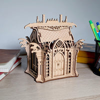 A spooky Halloween Gothic house with an opening roof, designed as a storage box for small items. Perfect for Halloween decor, organizing trinkets, or adding a mysterious touch to any space. Ideal for gothic style lovers and festive collectors. A unique and practical gift.
