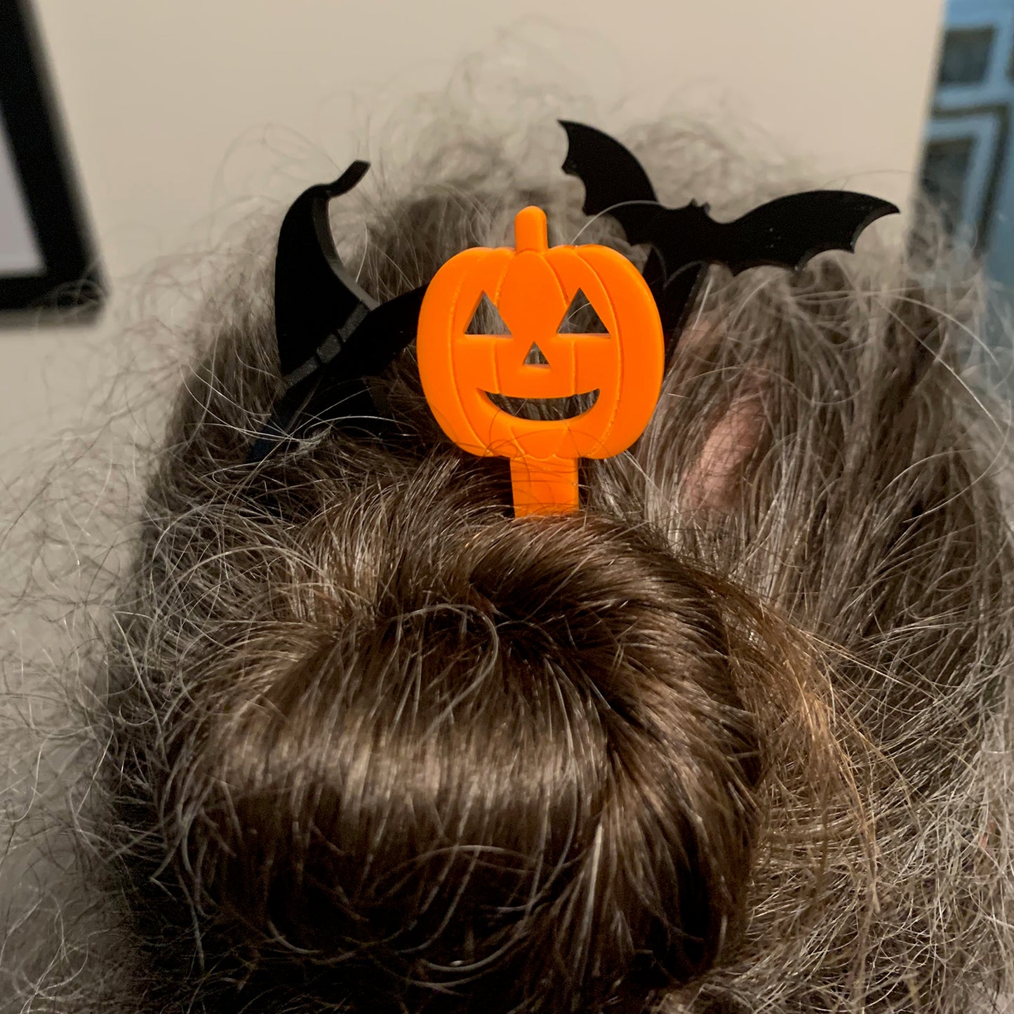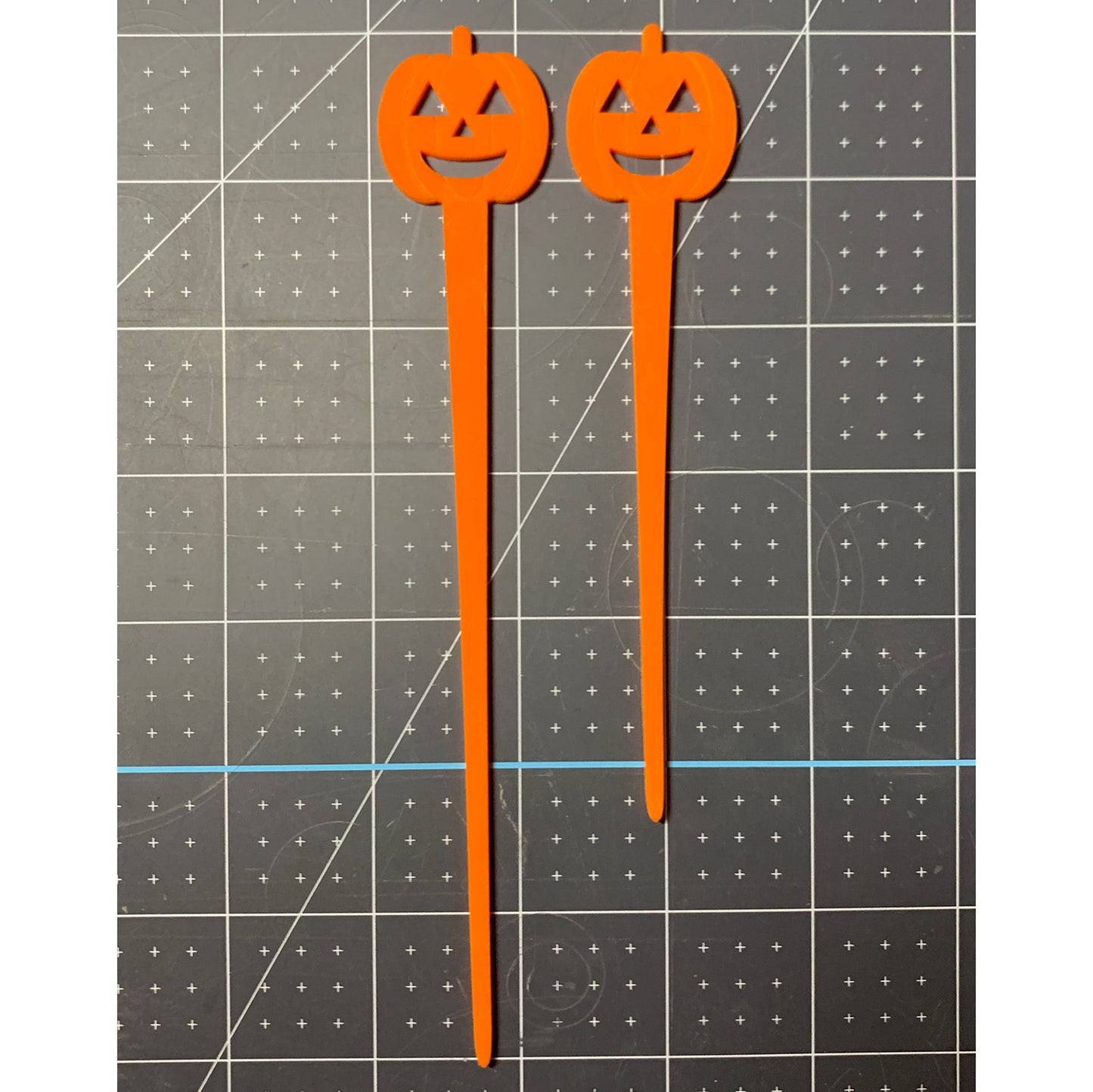 These fun acrylic hairsticks are perfect for keeping your hair in place while looking festive for the Halloween season! The long hairsticks are a traditional size, but for many people will have several inches of the stick visible below a bun; the shorter hairsticks may be more comfortable for kids or folks with shorter or less dense hair. They can be made in any color of acrylic, but will not work as well in most woods, especially natural ones, which are prone to breaking. Design comes with an easy to use jig that will allow you to engrave both sides of your hairsticks if you want.