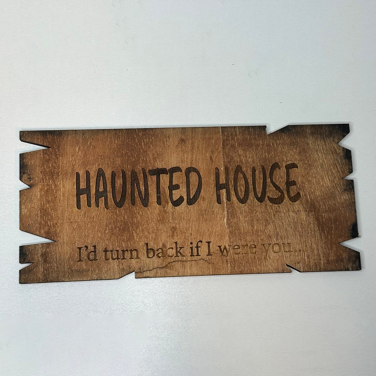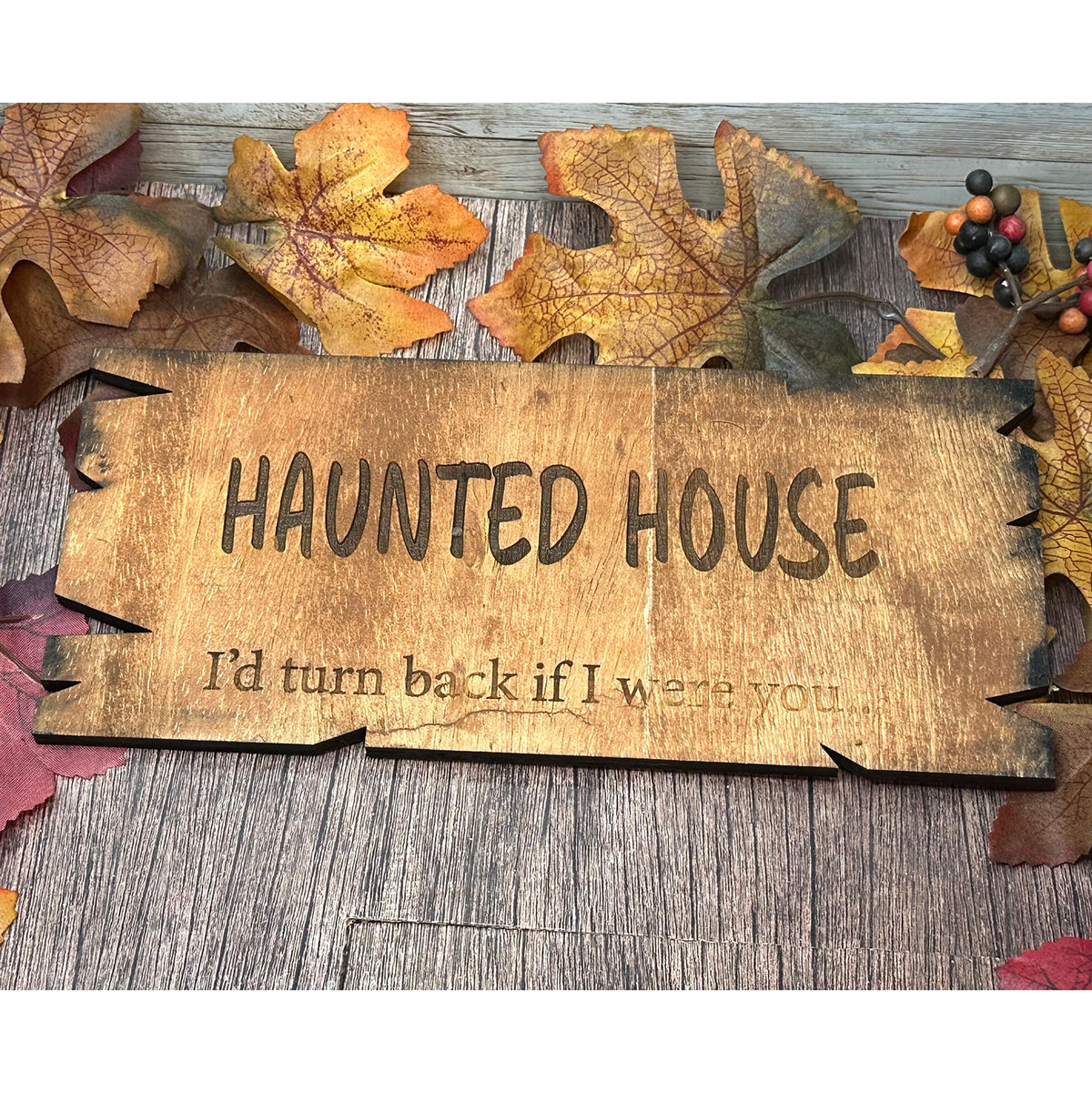 Warn visitors with this eerie "Haunted House 'I'd Turn Back if I Were You'" sign. Ideal for creating a chilling atmosphere in your home or yard this Halloween season.