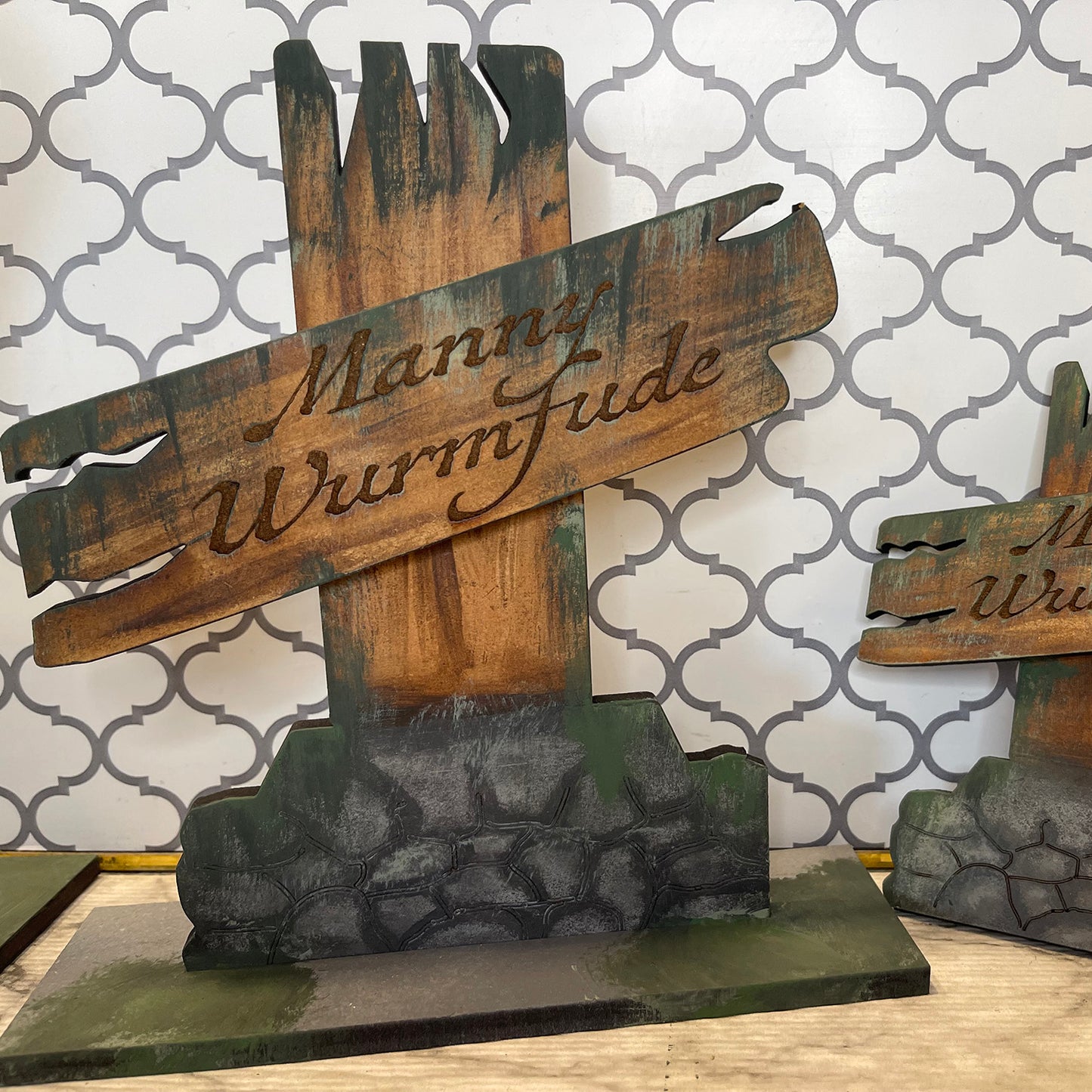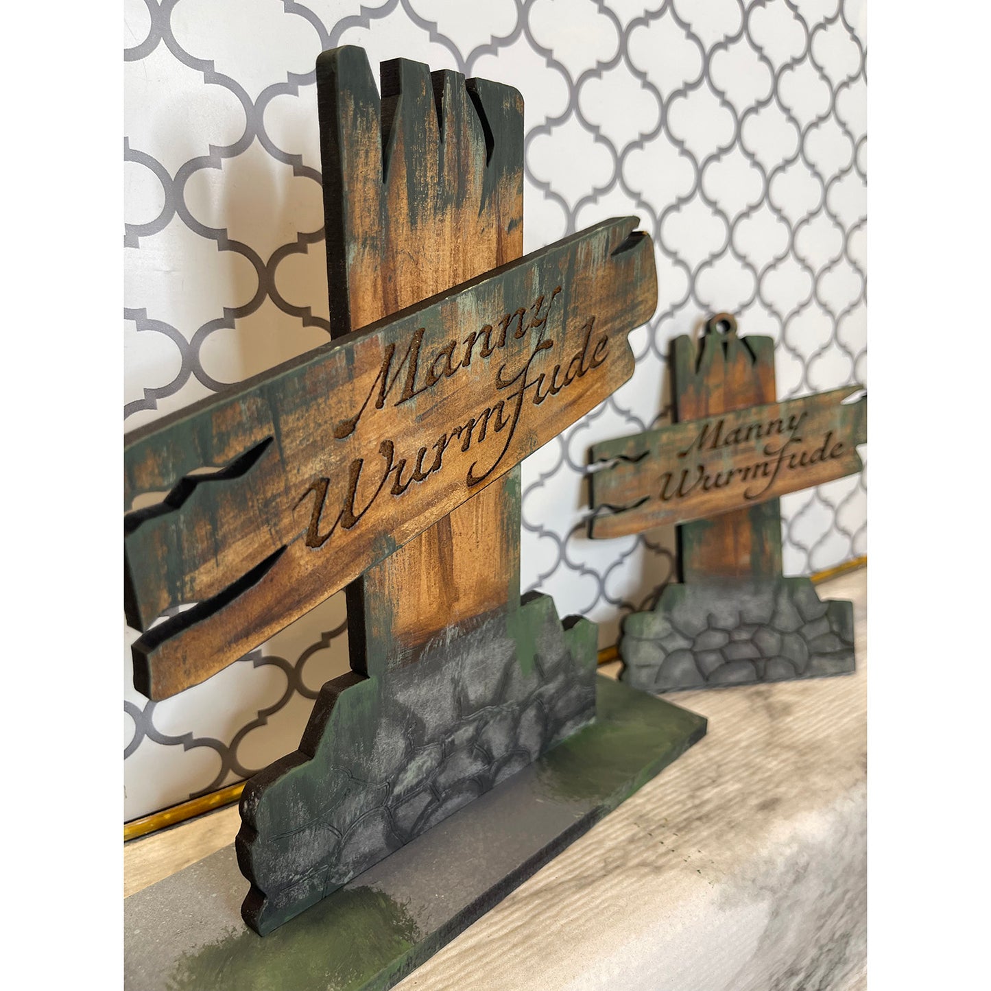 These silly Halloween tombstones are sure to add some spook to your holiday as well as some laughs. There are a total of 5 large, laser cut tombstones as well as car charms and desk charms to match. So make sure to collect them all and have a nice set of Halloween decor items for every area of your house and even in your car. Some of these guys take a little while to engrave, however, it is worth it. The paint time depends on how detailed you want them to be. These guys really stand out and are a great addition to the holiday.