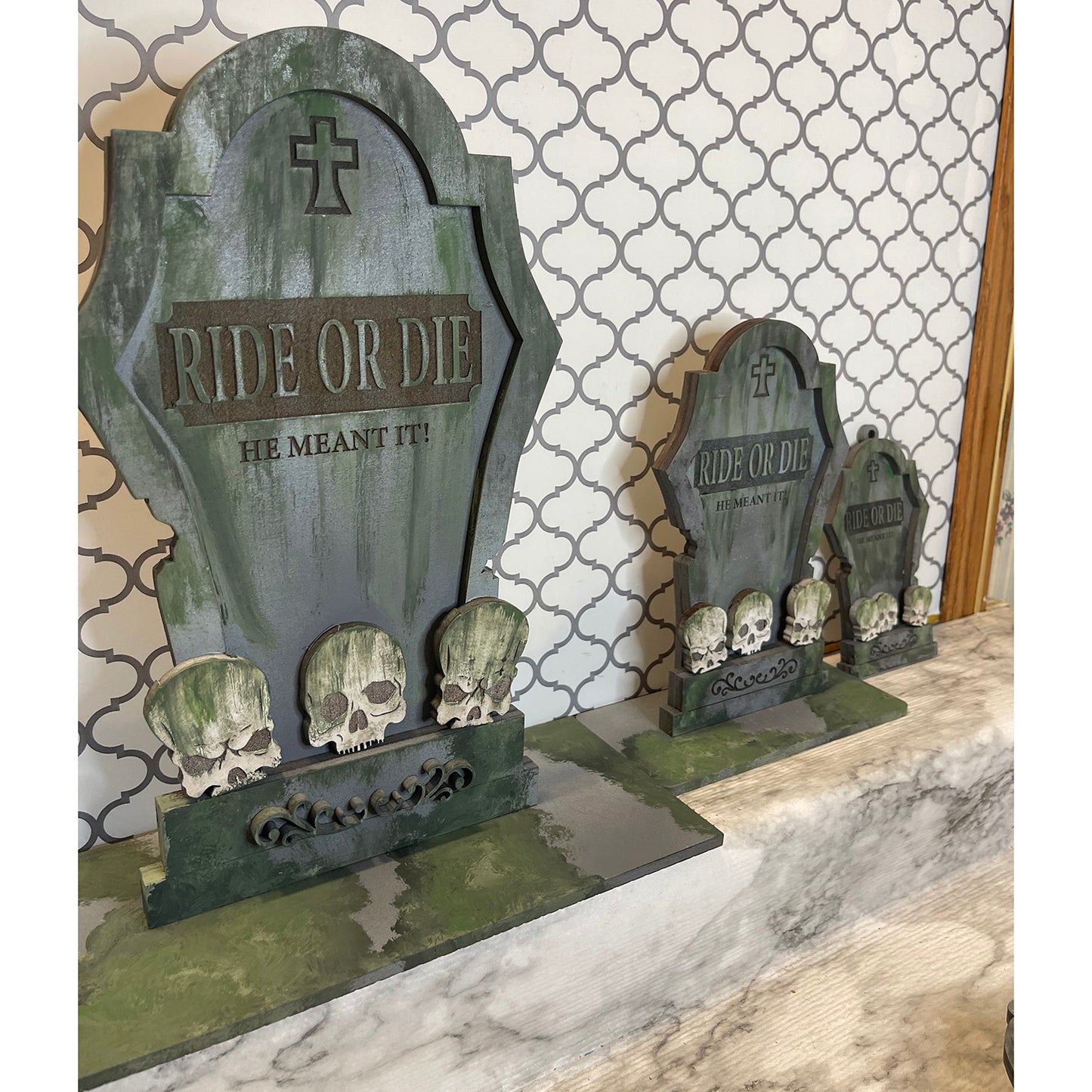 These silly Halloween tombstones are sure to add some spook to your holiday as well as some laughs. There are a total of 5 large laser cut tombstones as well as car charms and desk charms to match. So make sure to collect them all and have a nice set of Halloween decor items for every area of your house and even in your car. Some of these guys take a little while to engrave, however, it is worth it. The paint time depends on how detailed you want them to be. These guys really stand out and are a great addition to the holiday.