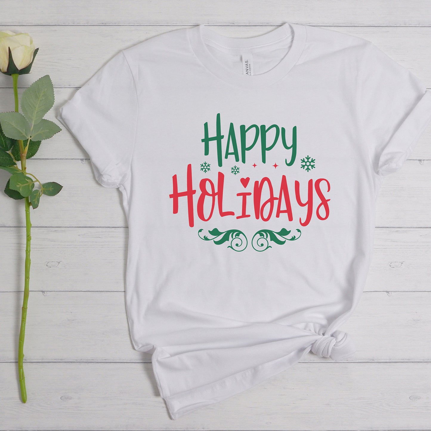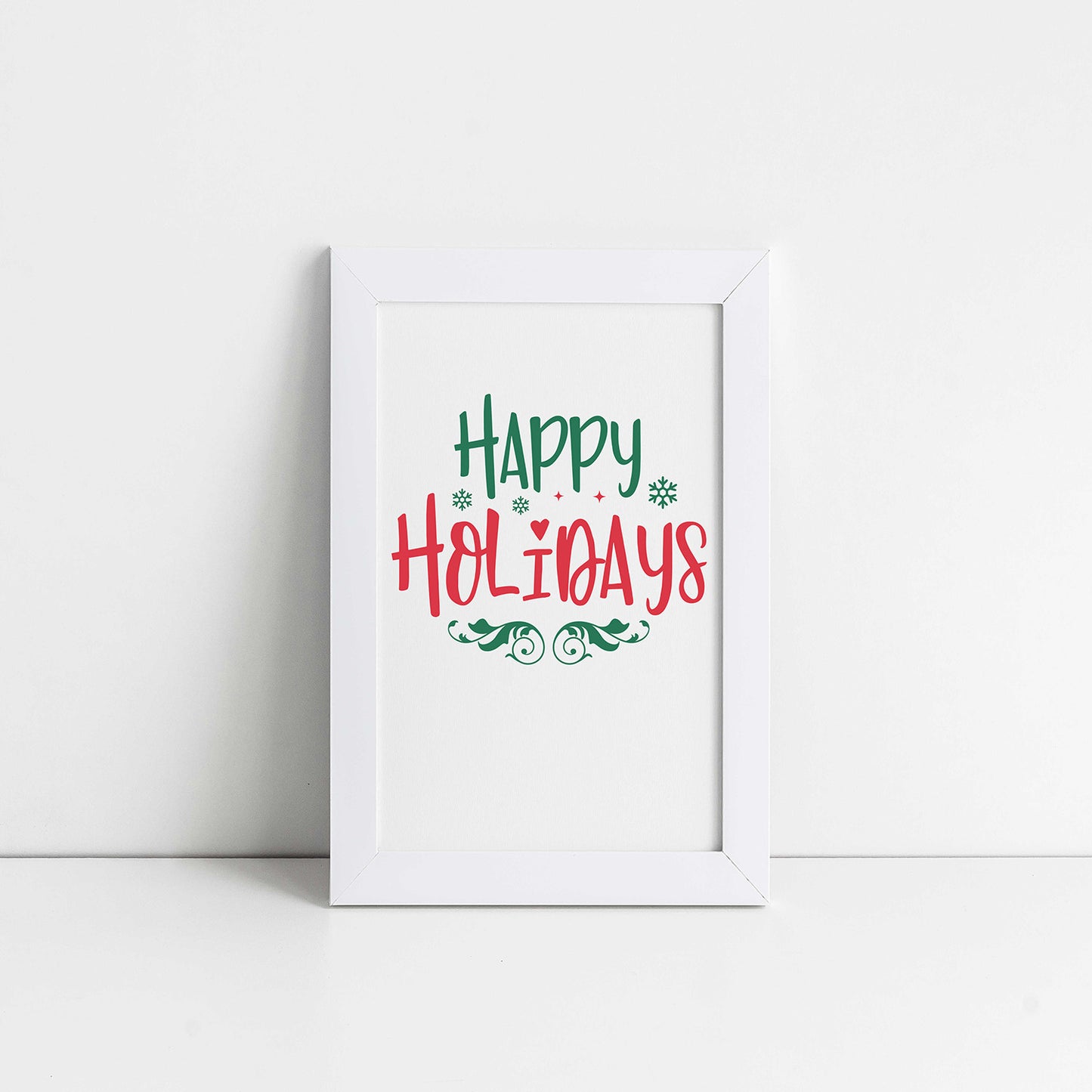 Whether you're hosting a holiday gathering or simply enjoying quiet moments with your loved ones, this "Happy Holidays" graphic adds a touch of elegance and charm to any setting. It also makes for a thoughtful and heartwarming gift for friends and family, spreading the holiday spirit and love. The high-quality iron-on material ensures long-lasting wear and easy application. Simply iron on to any desired item or surface such as a shirt, tote bag, mug, or anything else you want to show off. This design is perfect for laser cutting, adding a unique and personalized touch to your holiday decorations.