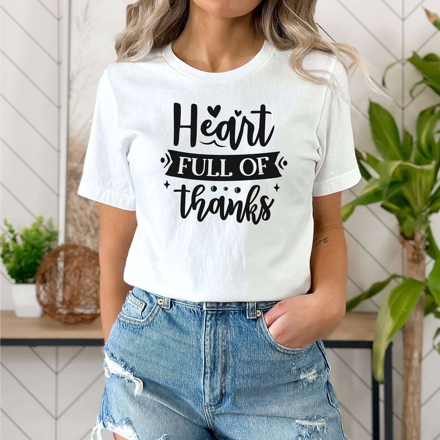 Let the "Heart Full Of Thanks" graphic radiate love and appreciation in your home, creating an environment of joy and gratitude. This charming and meaningful laser cut design will surely bring a smile to your face. The high-quality iron-on material ensures long-lasting wear and easy application. Simply iron on to any desired item or surface such as a shirt, tote bag, mug, or anything else you want to show off.