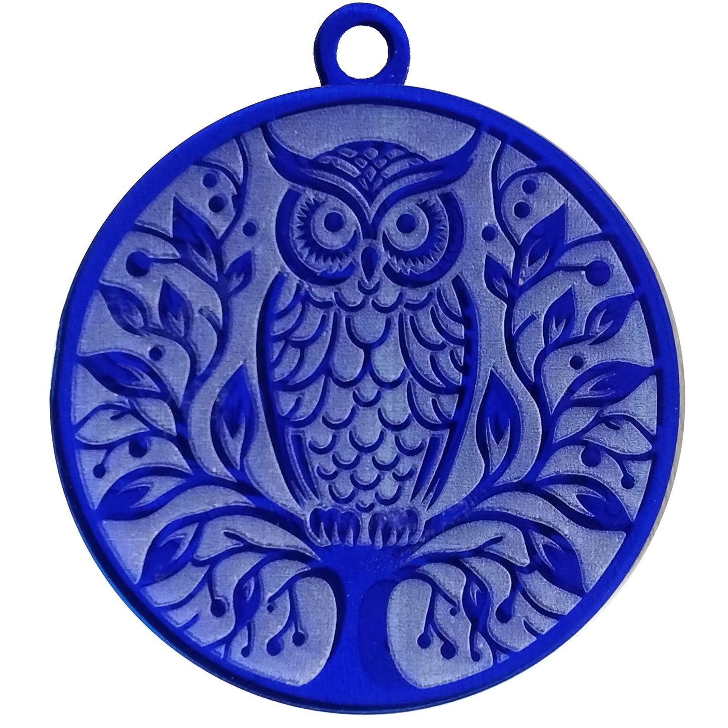 Experience the serene allure of twilight with the double-sided Iconic Mystic Owl Ornament. A picturesque owl perched on a sturdy tree graces each side, creating a whimsical charm for your window, pull chain, or car. The unique design process ensures an attractive, symmetric display in any translucent material.