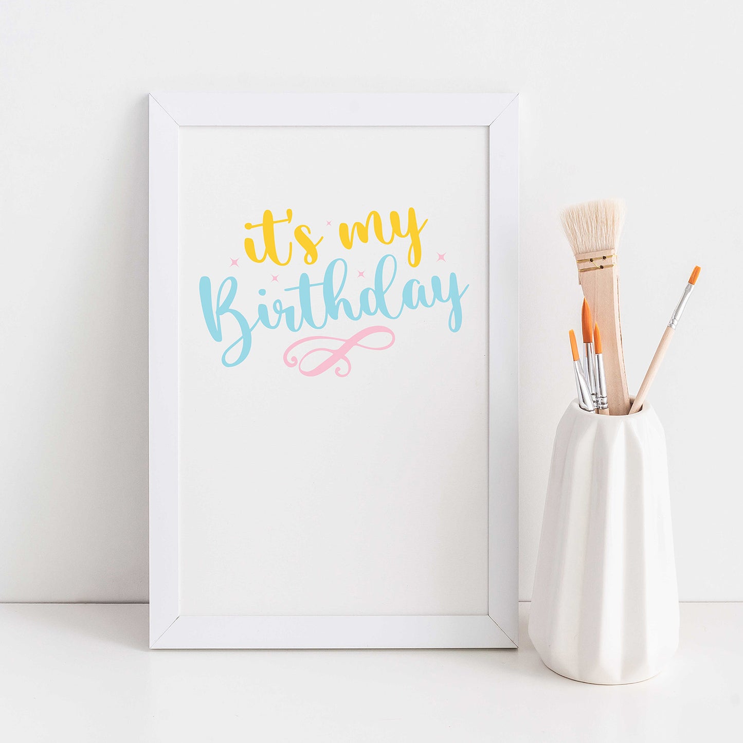 Celebrate your special day in style with the "It's My Birthday" graphic. This vibrant and eye-catching graphic is perfect for laser cutting and is the ideal accessory to let everyone know that it's your birthday. With its bold and fun design, it adds a festive touch to any surface you want to personalize.