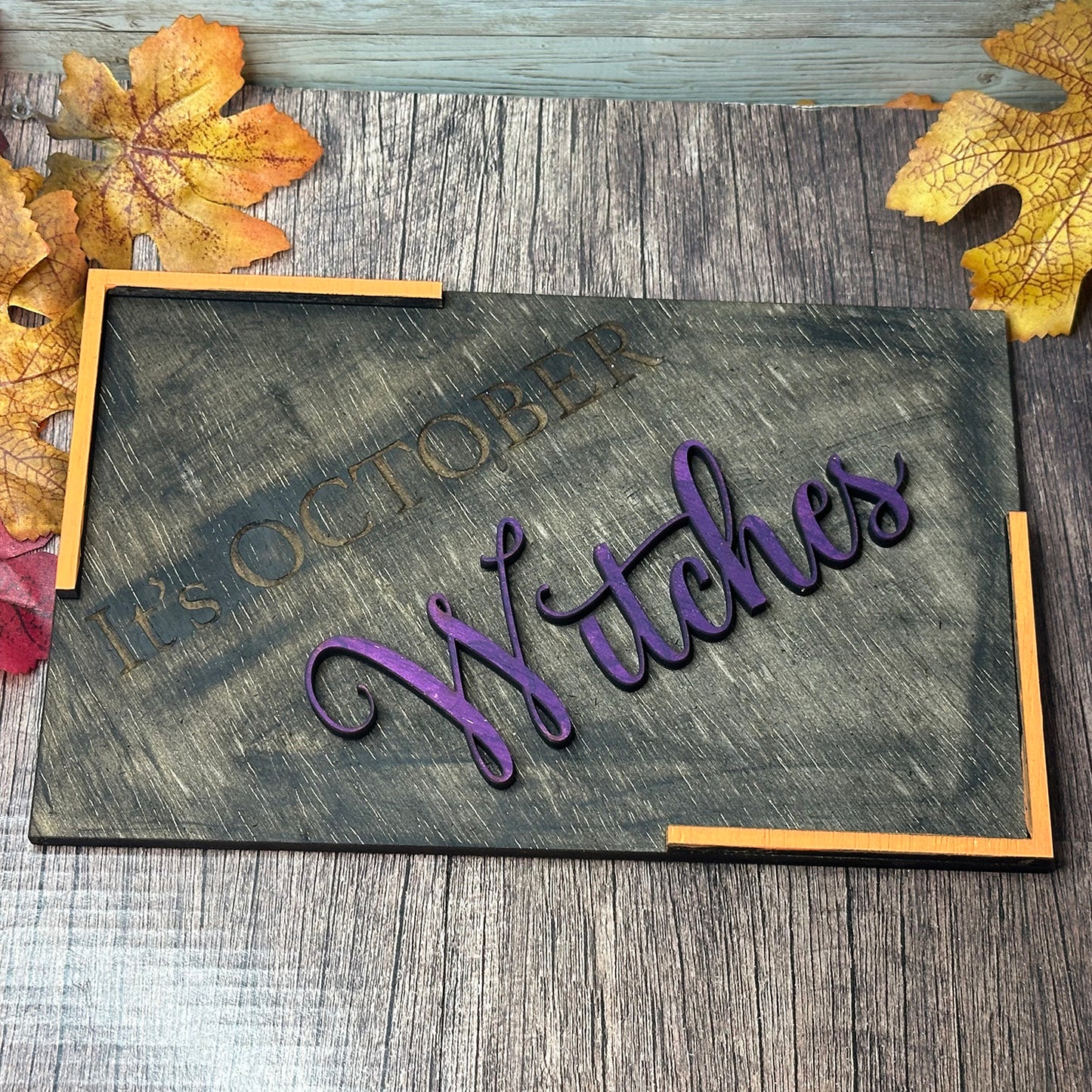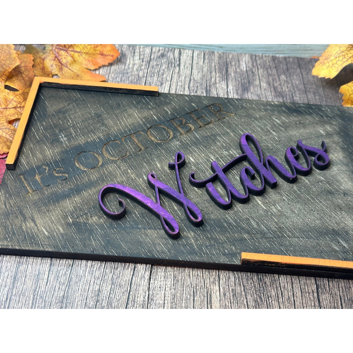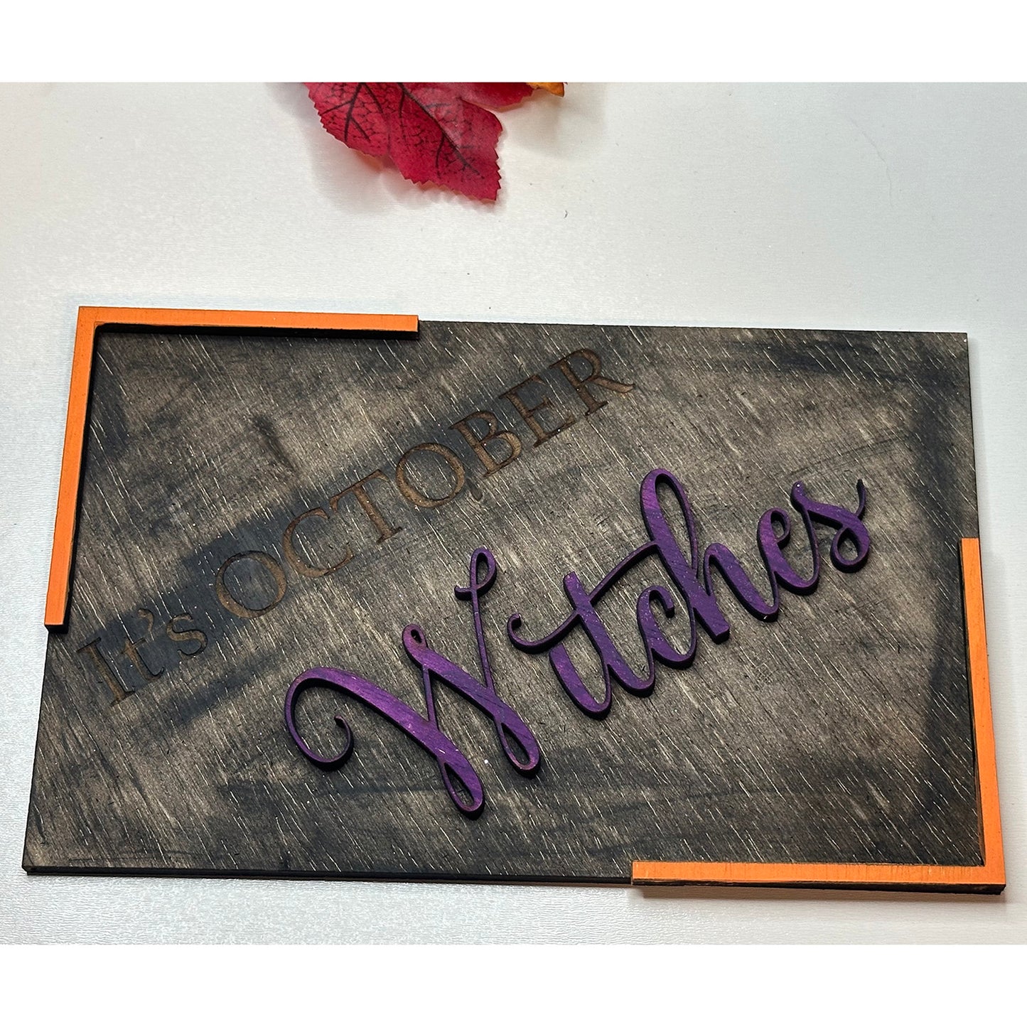 Get ready for Halloween with this "It's October Witches" sign. Perfect for adding a festive and spooky touch to your home decor.