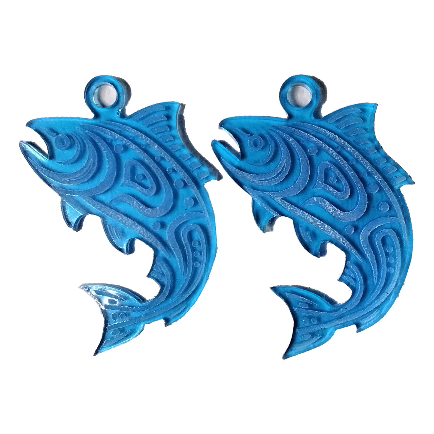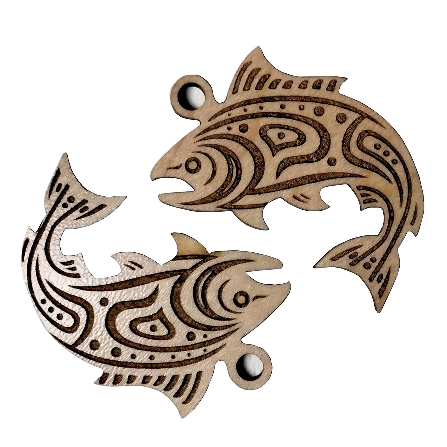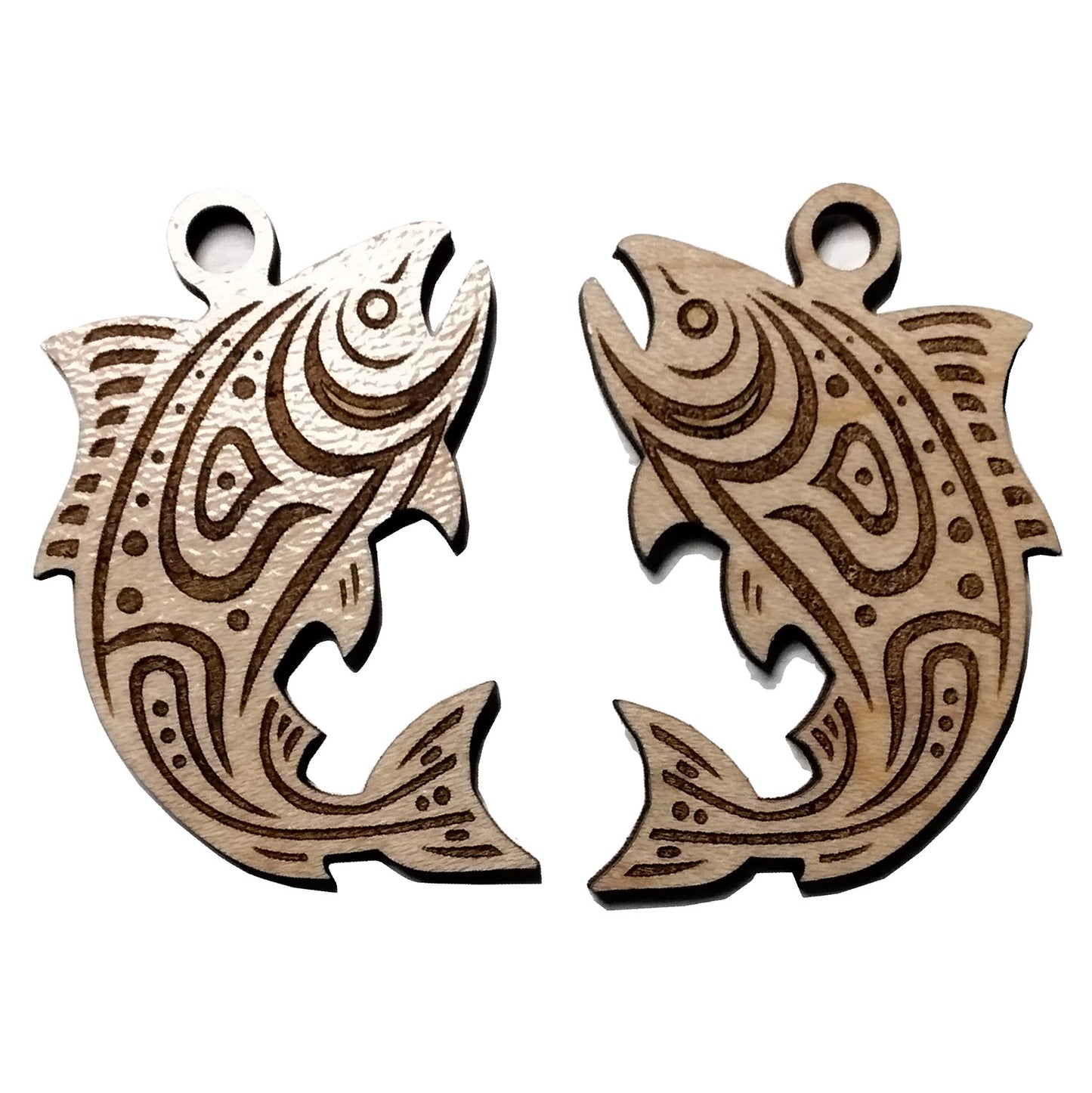 These Classic Salmon make great earrings as this design has a special trick to be engraved on both sides making them super for wood or acrylic. By tightly securing the material before cutting and carefully removed and replaced upside down in the opposite hole and with the outline on ignore, and rerun the file without making any adjustments. As long as the material has not moved it will engrave in the same place.