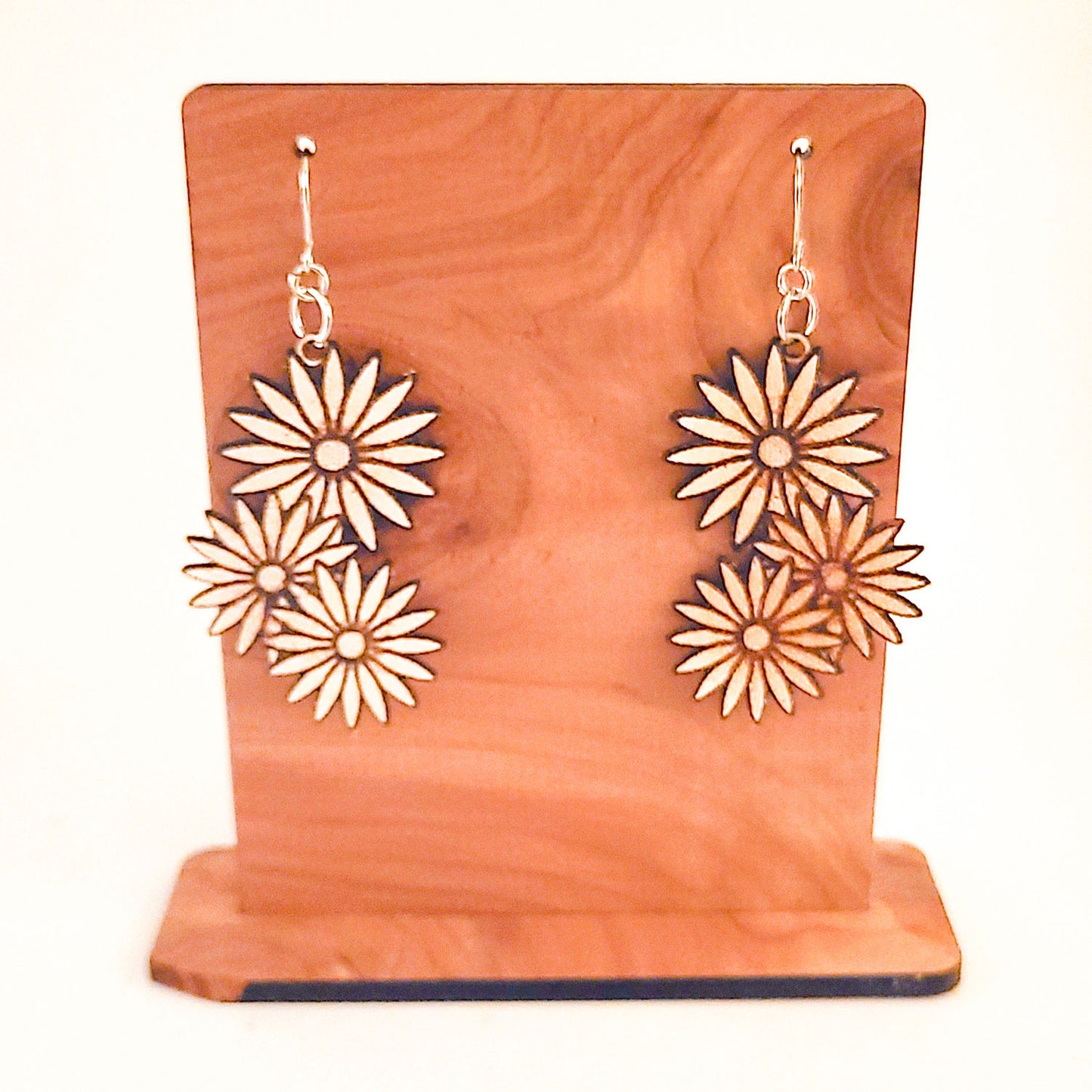These daisy dangles are light and feathery when laser cut from thin natural leather. They can be painted or left as is. Show your springtime spirit any season of the year.