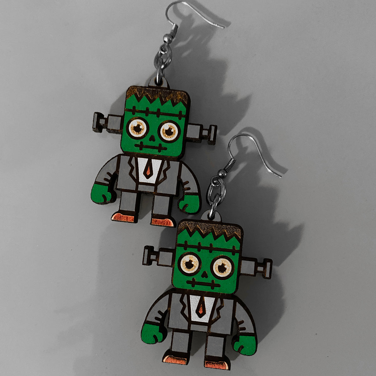These delightful block-style Frankenstein earrings bring a fun and spooky vibe to any outfit. Laser-cut from medium hardwood, they are perfect for casual wear or Halloween celebrations.