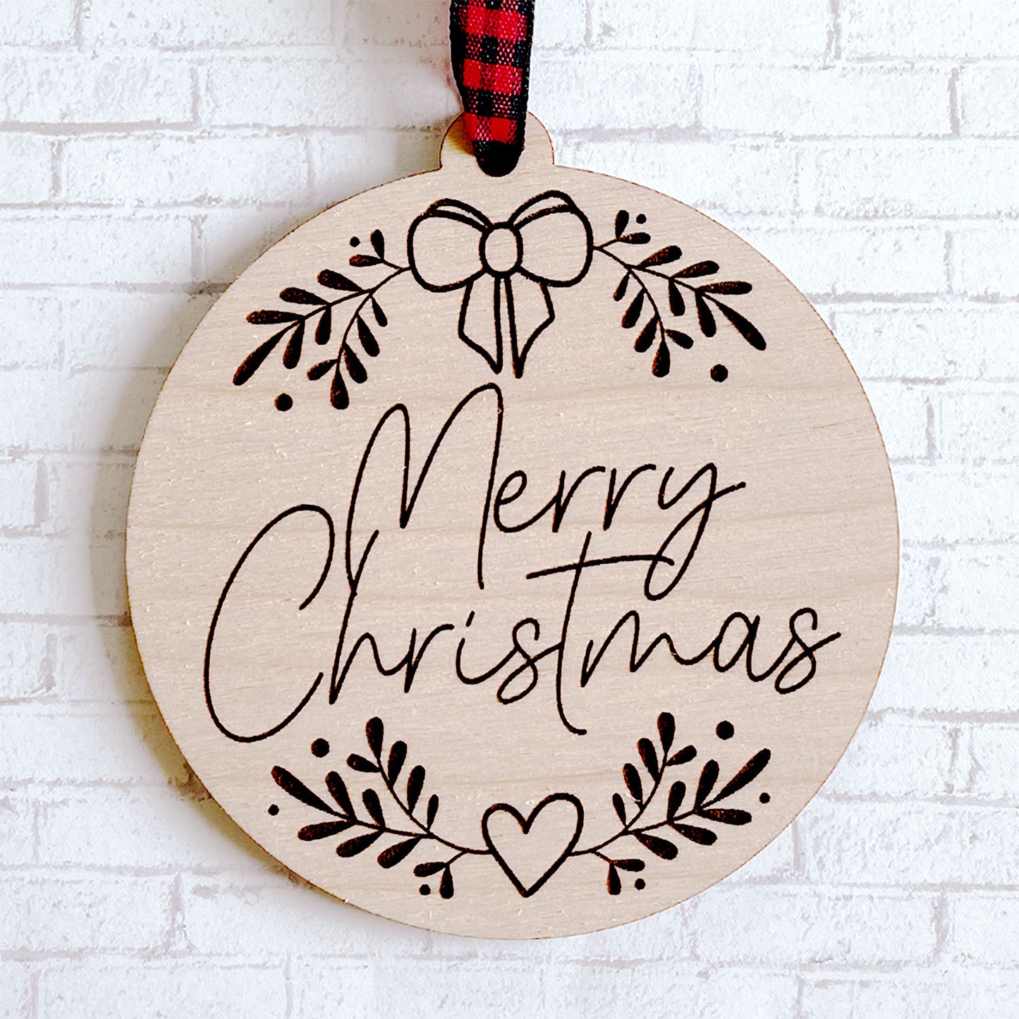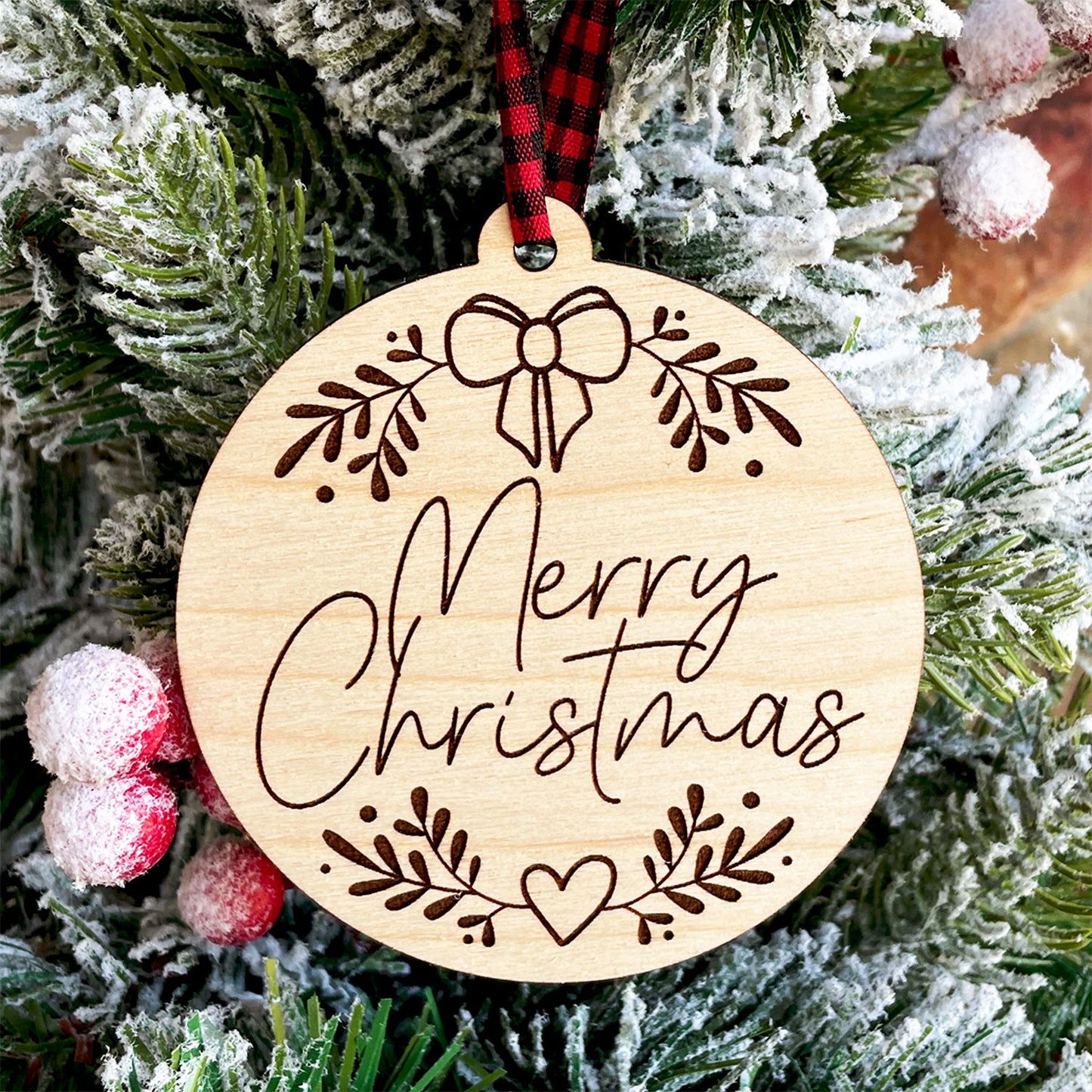 This beautiful Merry Christmas Ornament with bow, perfect for laser cutting, will be the gift your loved ones can't stop talking about year after year.
