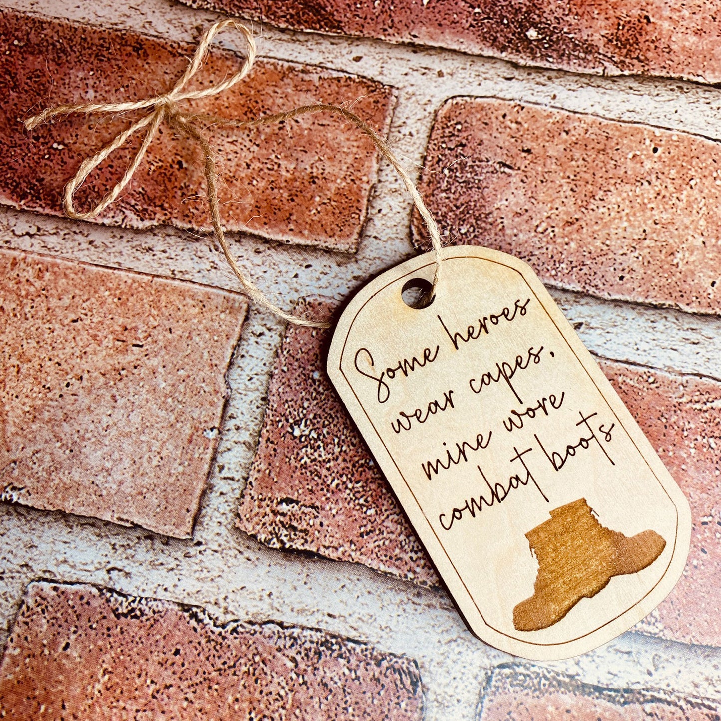 This dog tag-style Memorial Day design was made to pay respect to and honor our military. There are two versions (one in memory *wore* and one to honor current members). This covers all the military members past and present. This laser cut design can be cut as a sign (enlarge before cutting), keychain, ornament, etc. My hero wears combat boots and I wanted to share the love and respect for anyone who served or is currently serving. This makes such a unique and personal gift idea as well. Great for 4th of July / American Independence Day craft shows.