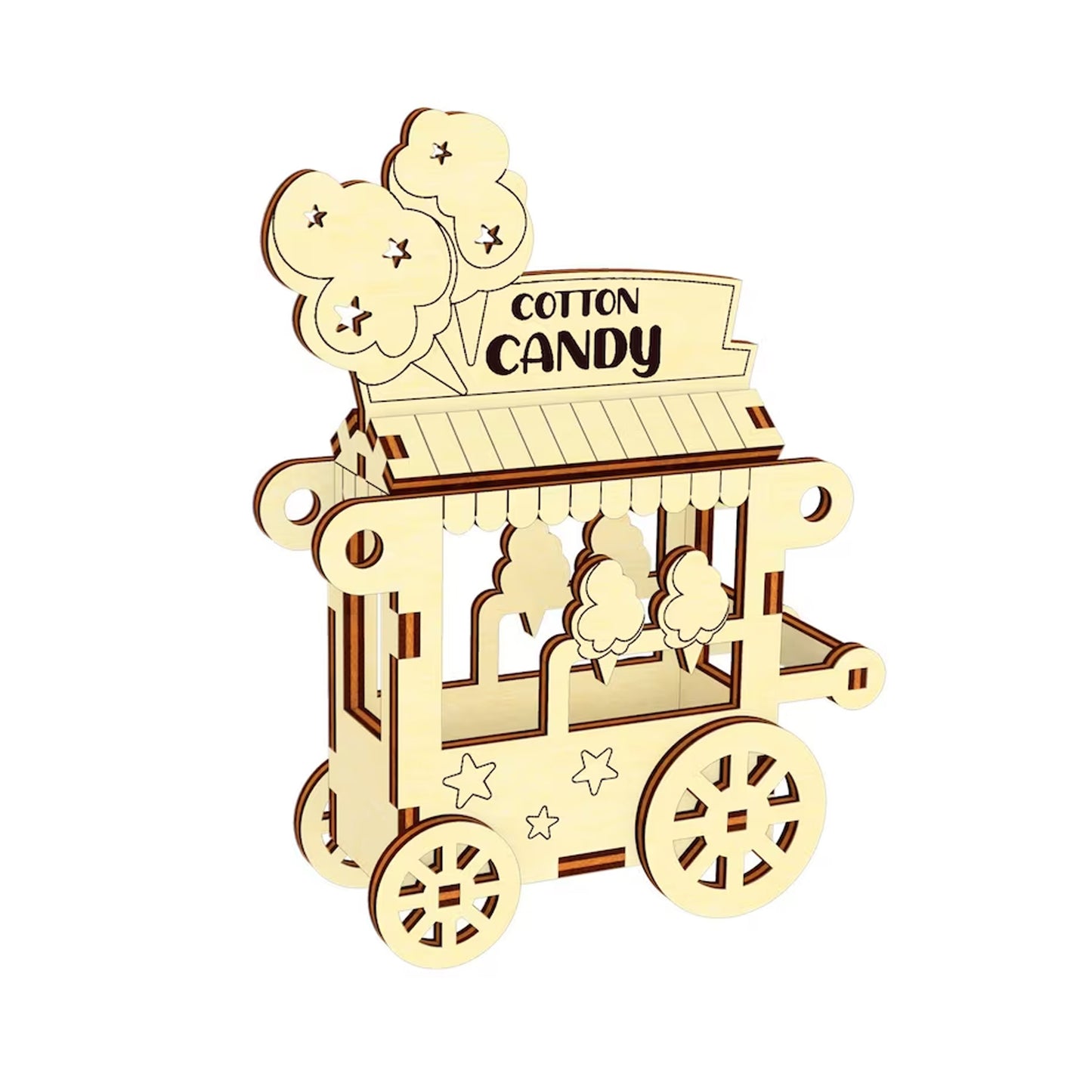 Cotton Candy Cart Miniature Ornament: Add a whimsical touch to your decorations with this intricately laser cut design. This delightful miniature captures the essence of a carnival treat in stunning detail. Hang it on your tree or wreath. Special holes make it easy to hang and enjoy as an ornament. Elevate your decor with a playful twist, reminiscing the joy of fairgrounds and sweets.