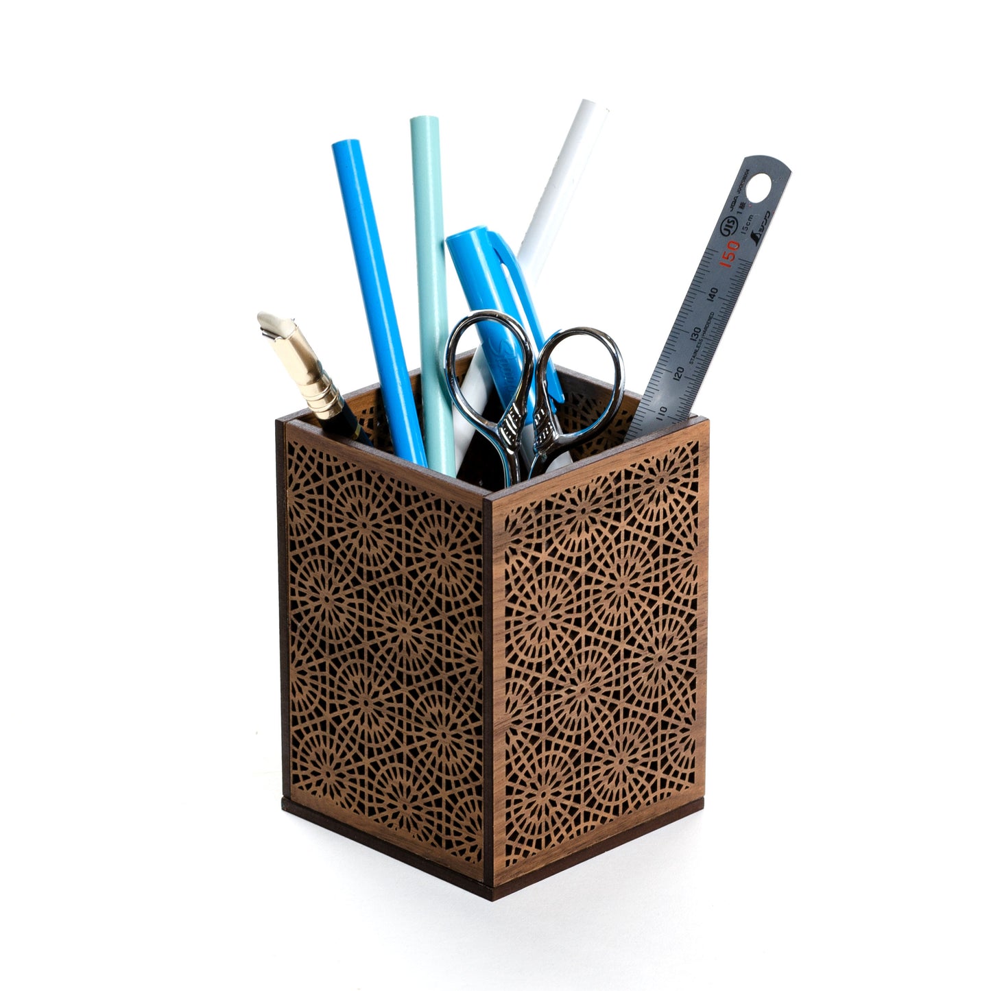 Add a modern flair to your desktop accessories and find creative inspiration every time you gaze into this mesmerizing, laser cut mosaic-inspired pattern.