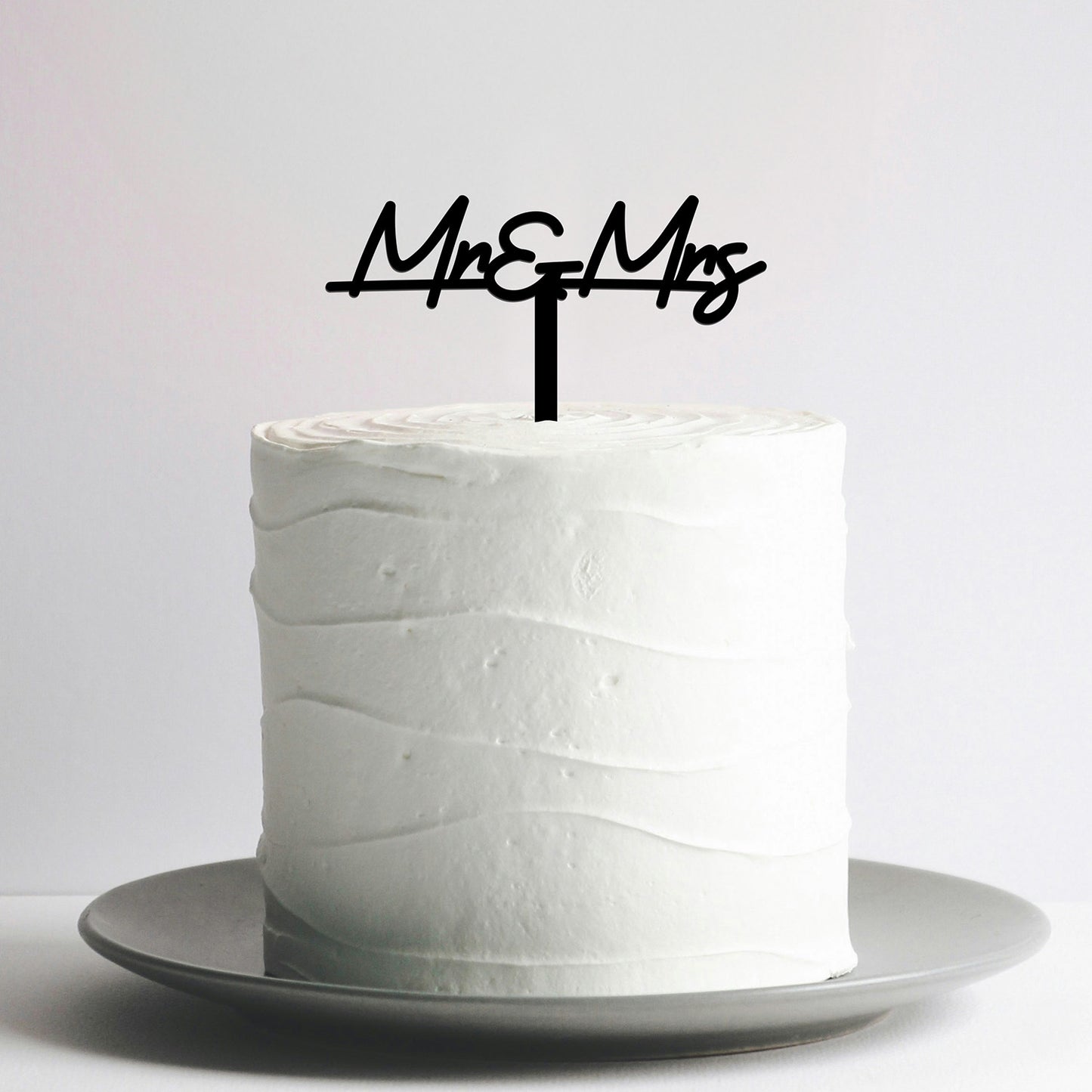 Bring instant elegance to your wedding cake with this simple cake topper. Cut from any color acrylic or wood to customize the design further. The topper is about 5.5" wide but can be scaled up or down to suit cakes of any size.