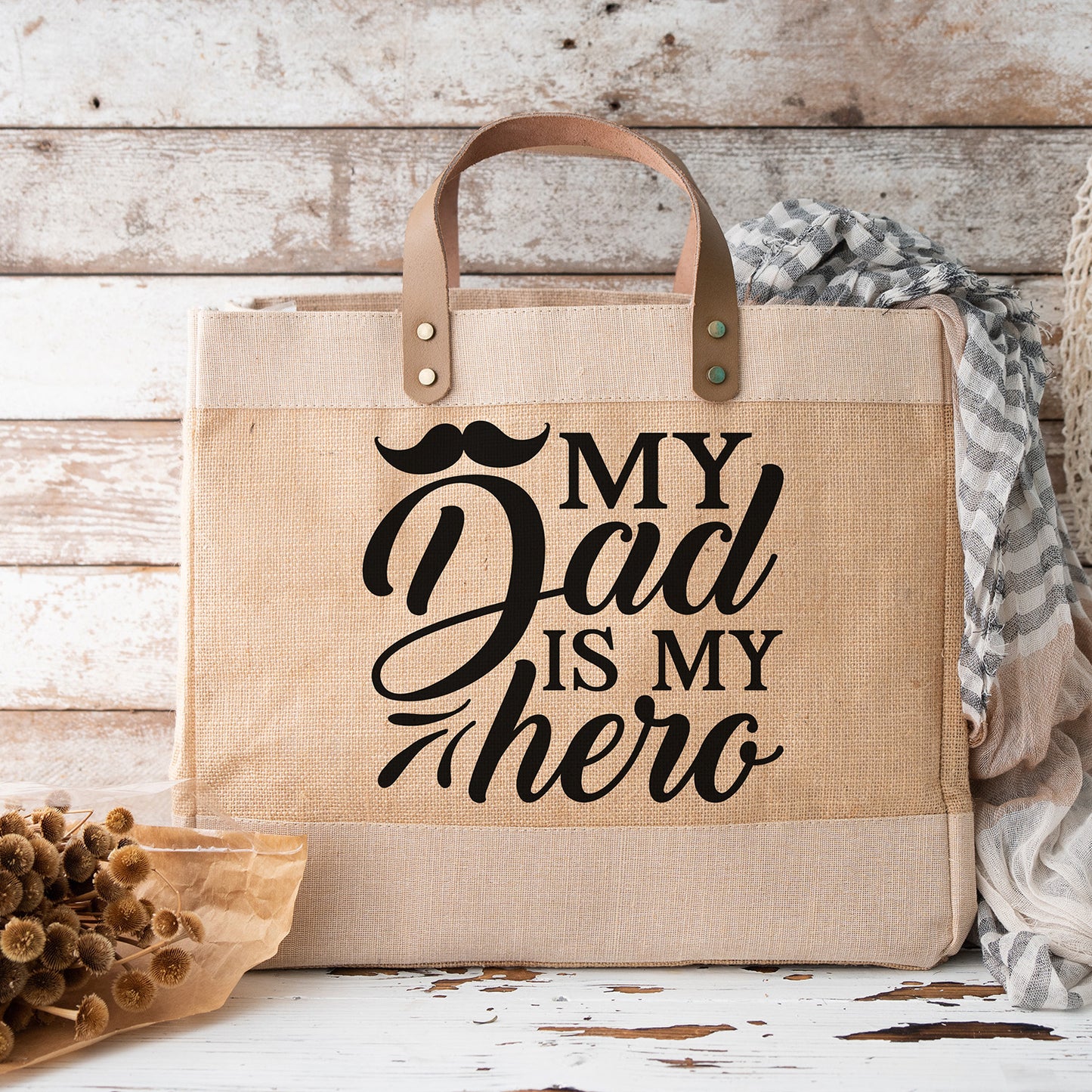 Introducing our heartwarming "My Dad Is My Hero" Graphic, a touching tribute to the extraordinary love and admiration a child has for their father. The high-quality iron-on material ensures long-lasting wear and easy application. This design is perfect for laser cutting and can be simply ironed on to any desired item or surface such as a shirt, tote bag, mug, or anything else you want to show off.