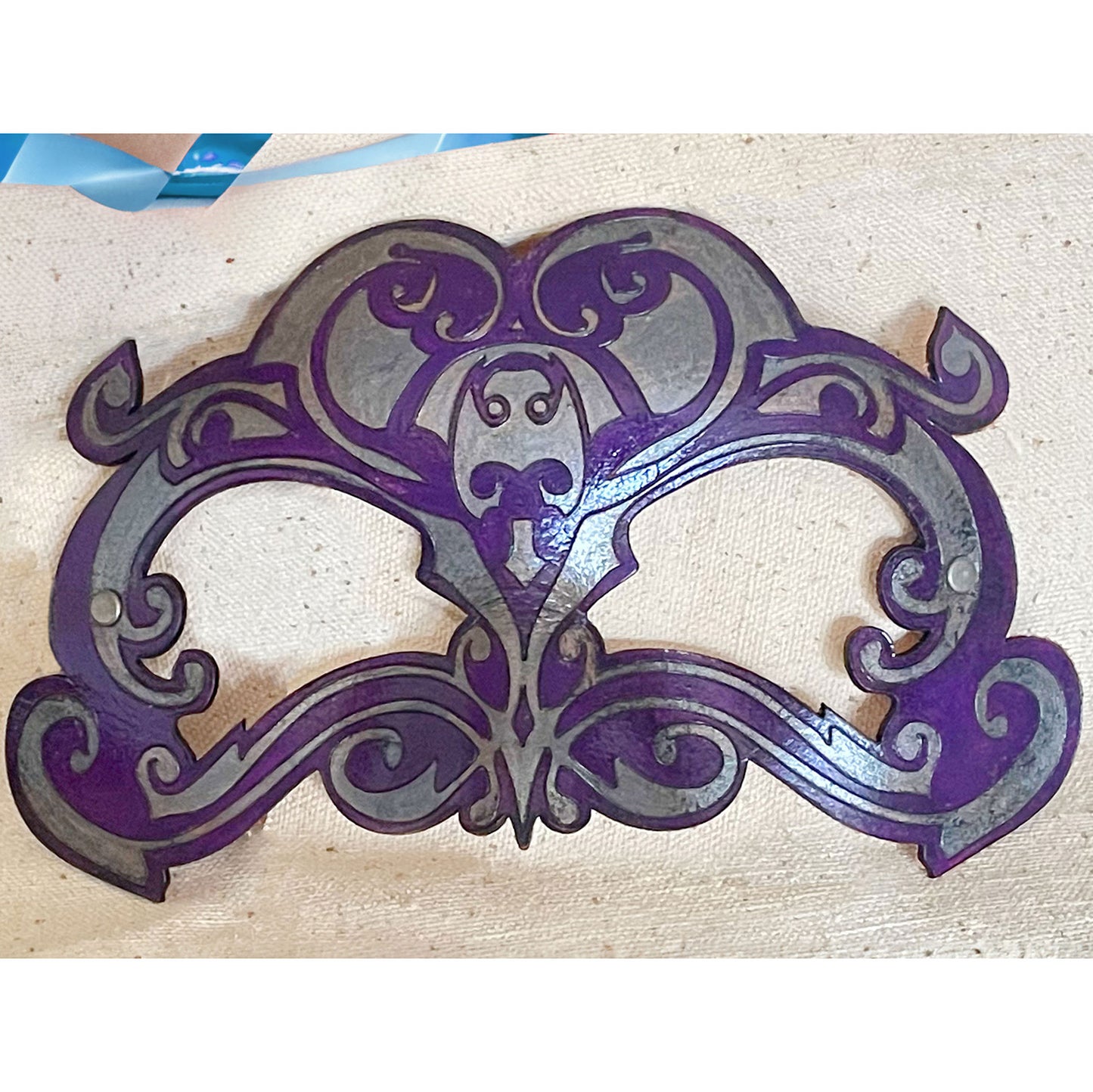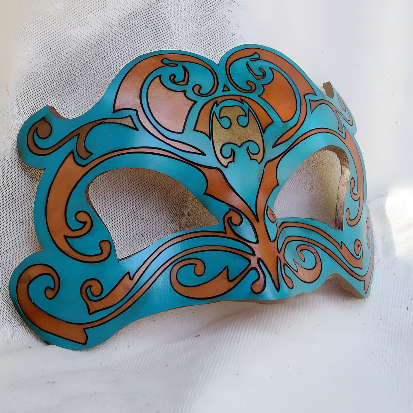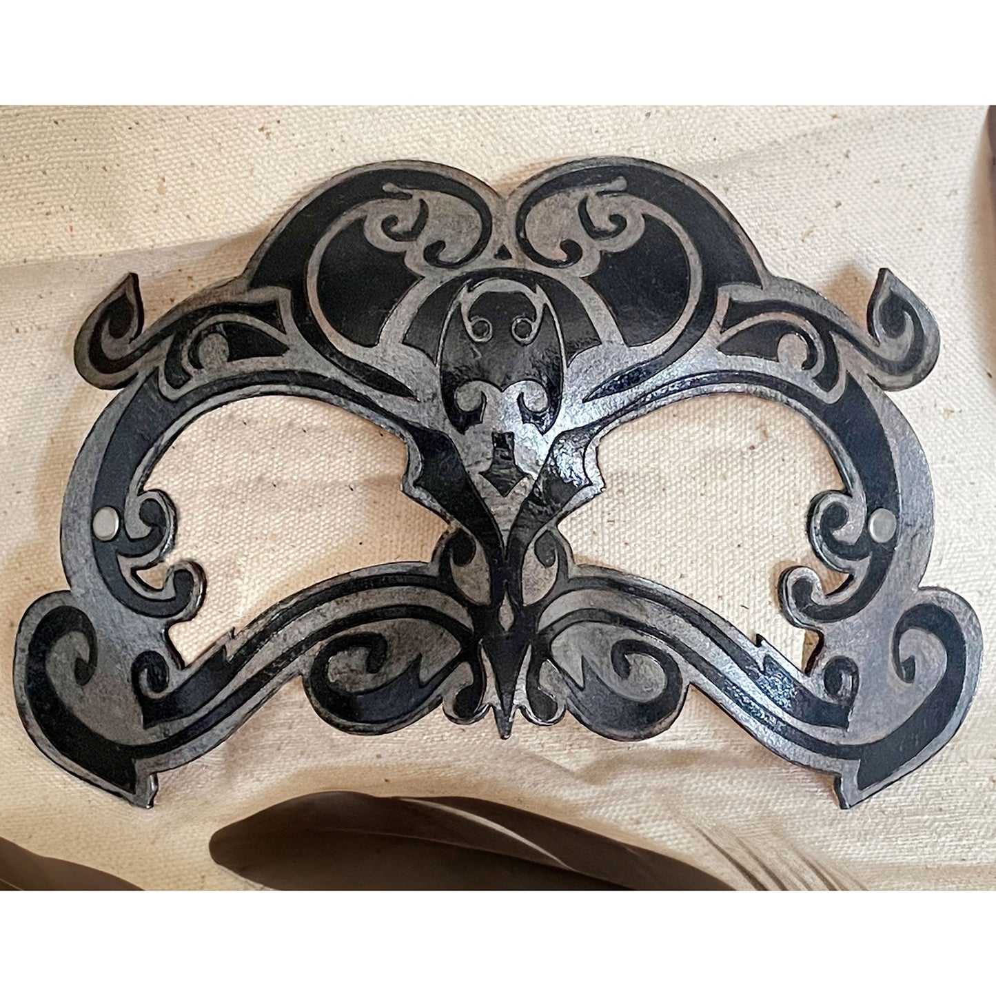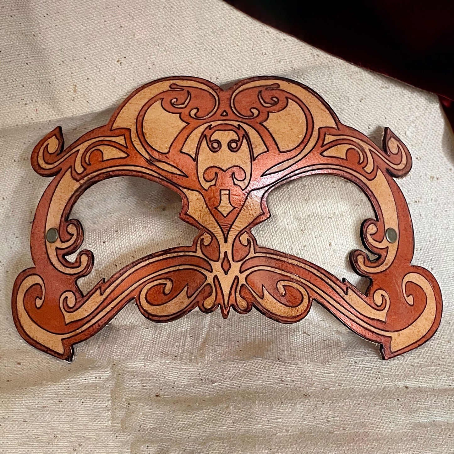 This intricate Mysterious Rococo Leather mask, perfect for laser cutting, is gloriously stunning when painted in two colors! Glowforge Proofgrade natural vegetable tan leathers can be wet formed before decorating. Simply remove the masking, soak it in clean water, and let dry over a plastic mask form (or your own face if you have the patience!). Customize your masterpiece with leather or acrylic paints after forming. Add your own ribbon, elastic or iron-on laces to wear.
