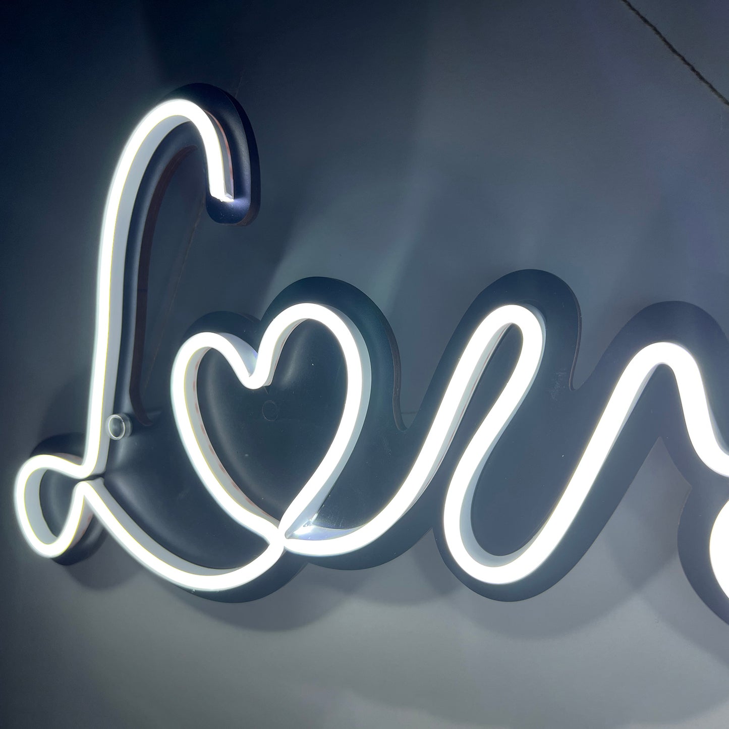 Easy, unique, NO SOLDERING, eye-catching Love neon sign. This laser cut sign is a great way to enhance the atmosphere of any room in your house. It can be used at weddings, parties, and all kinds of celebrations and makes a great gift for that special person you love. Silicon Neon flex LEDs are very bright, low voltage, and last thousands of hours.