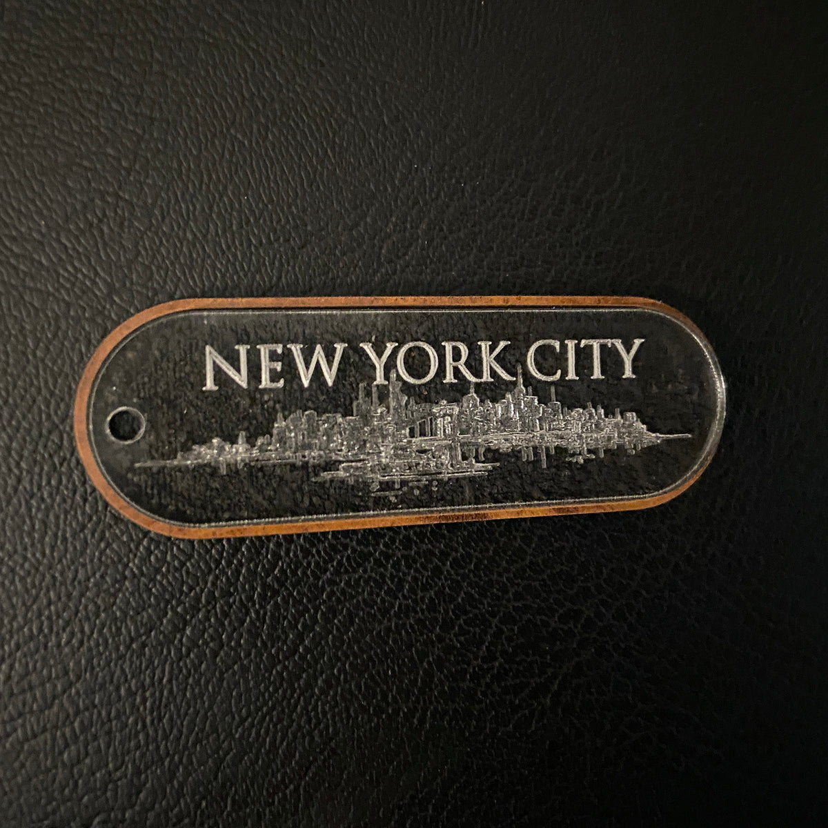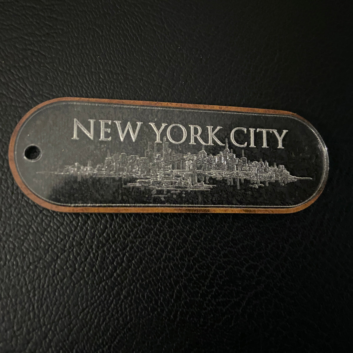Celebrate the vibrant skyline of New York City with this stylish charm crafted from durable hardwood and sleek acrylic, capturing the essence of the Big Apple.