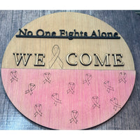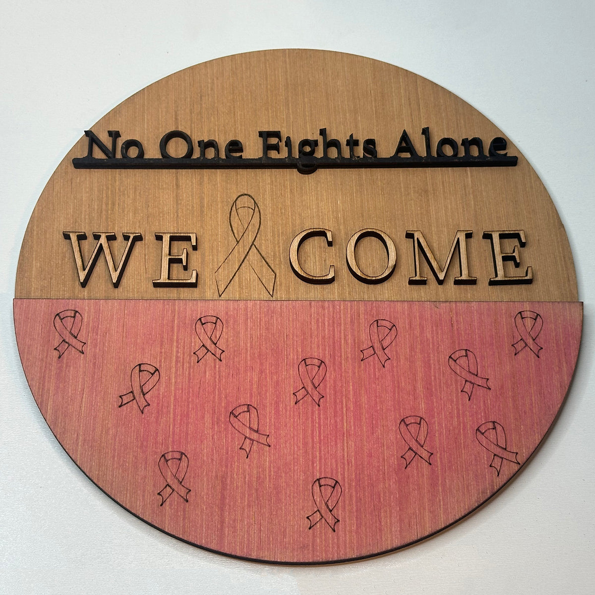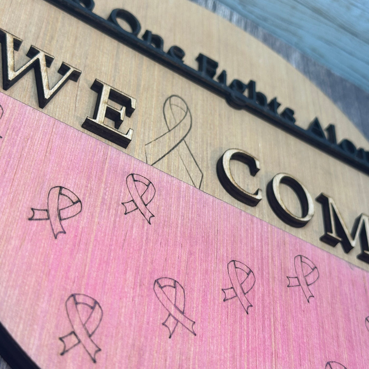 Show your support with this heartfelt "No One Fights Alone" door sign, designed for Breast Cancer Awareness Month. Ideal for spreading strength and solidarity while adding a meaningful touch to your decor.