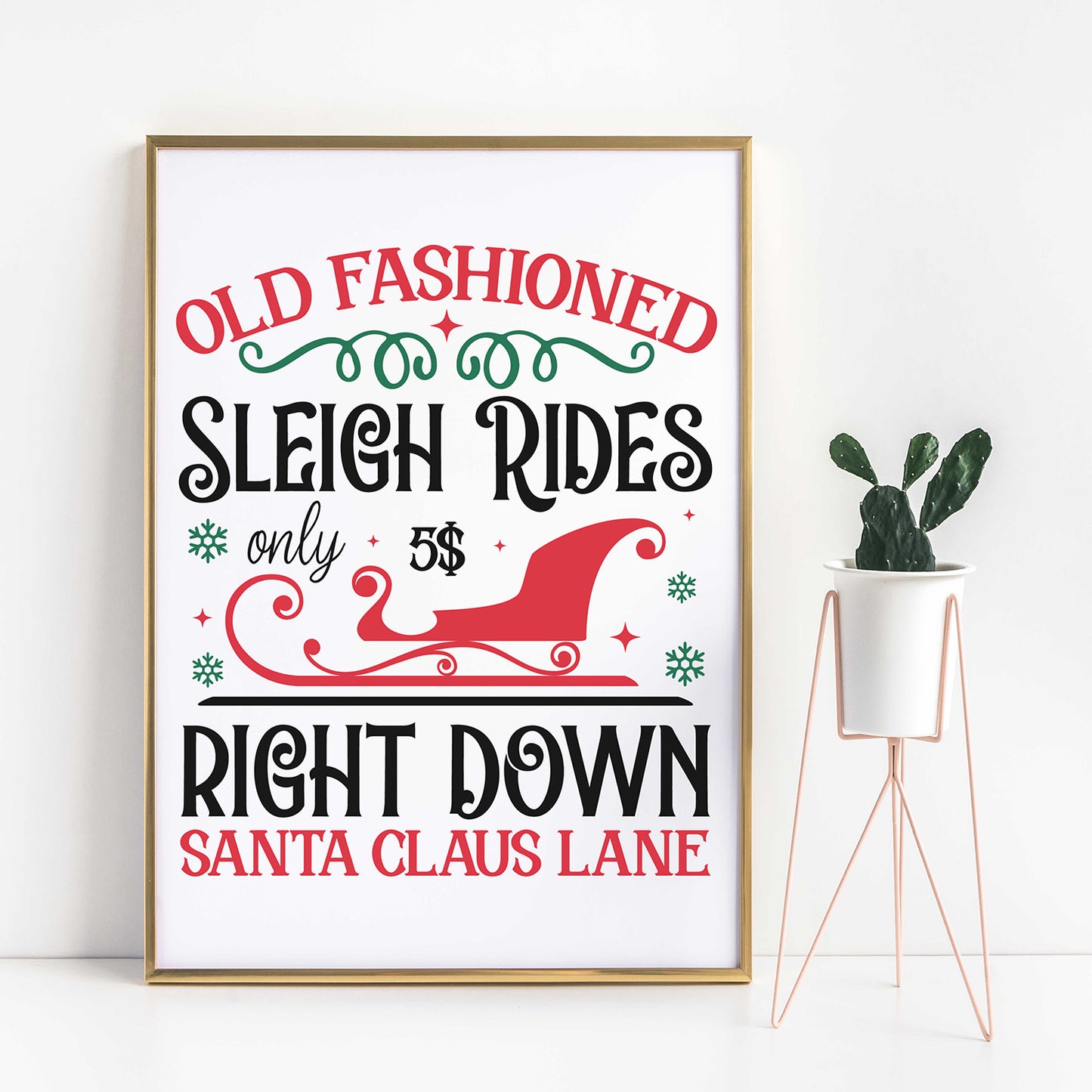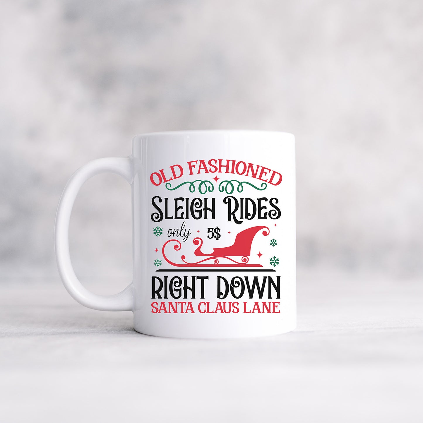 "Old Fashioned Sleigh Rides Right Down Santa Claus Lane" Graphic