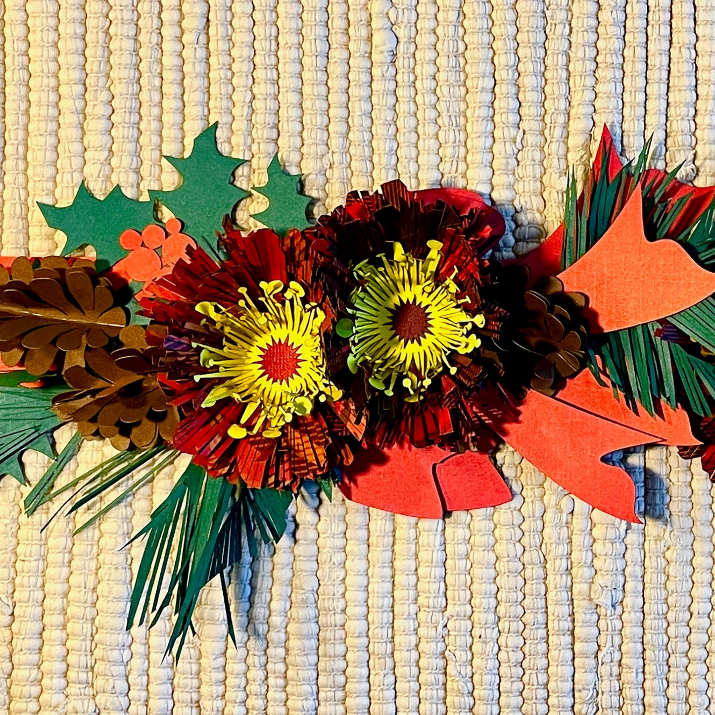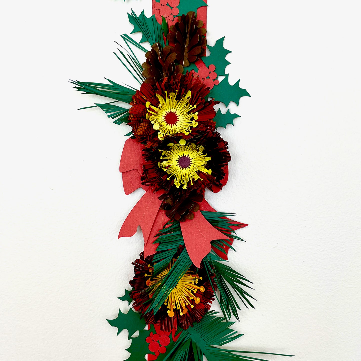 Build an arrangement of lovely laser cut paper flowers, holly, boughs, and cones to celebrate Christmas with these 10 components. Cut beautifully with the new Glowforge Aura (or with the performance series), and choose your own colors and your own designs using as many or as few resizable pieces as you wish. To hang on a wall, or a door, or use singular pieces to add elegance to a gift.