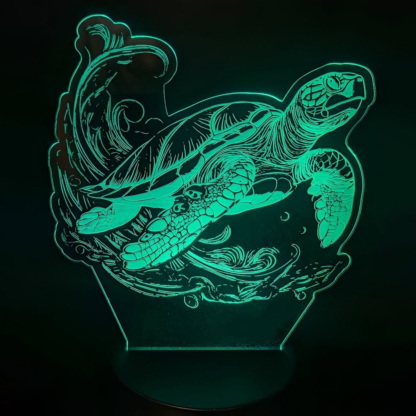 Bring the wonders of the ocean into your home with this captivating laser-engraved acrylic insert for an edge-lit LED nightlight. The intricate design showcases a sea turtle gracefully swimming through the deep blue sea. The soft glow of the LED base illuminates the turtle's delicate shell and flippers, creating a mesmerizing and calming ambiance. Perfect for adding a touch of marine beauty to your bedroom or living room, this insert will transport you to an underwater paradise every night.