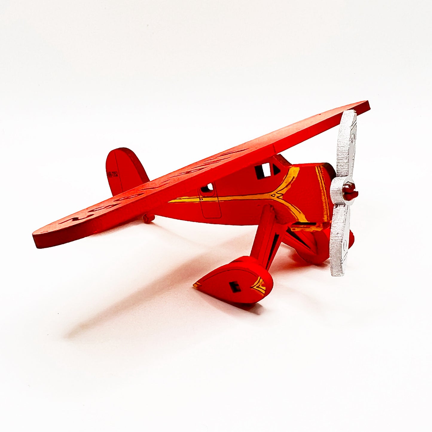 Once upon a time… an adventurous woman and hero of the skies crossed the Atlantic ocean. In homage to the great pioneer, this laser cut model will keep your imagination soaring to great heights, and allow you to unlock your inner aviator. This is the fifth airplane in the series, and it weighs close enough to the “Airplane Model - Twin Propeller” so it can be substituted in the Classic Wooden Mobile Display. This was designed while on an airplane crossing the Pacific Ocean. Customize the text and logos on your airplane.