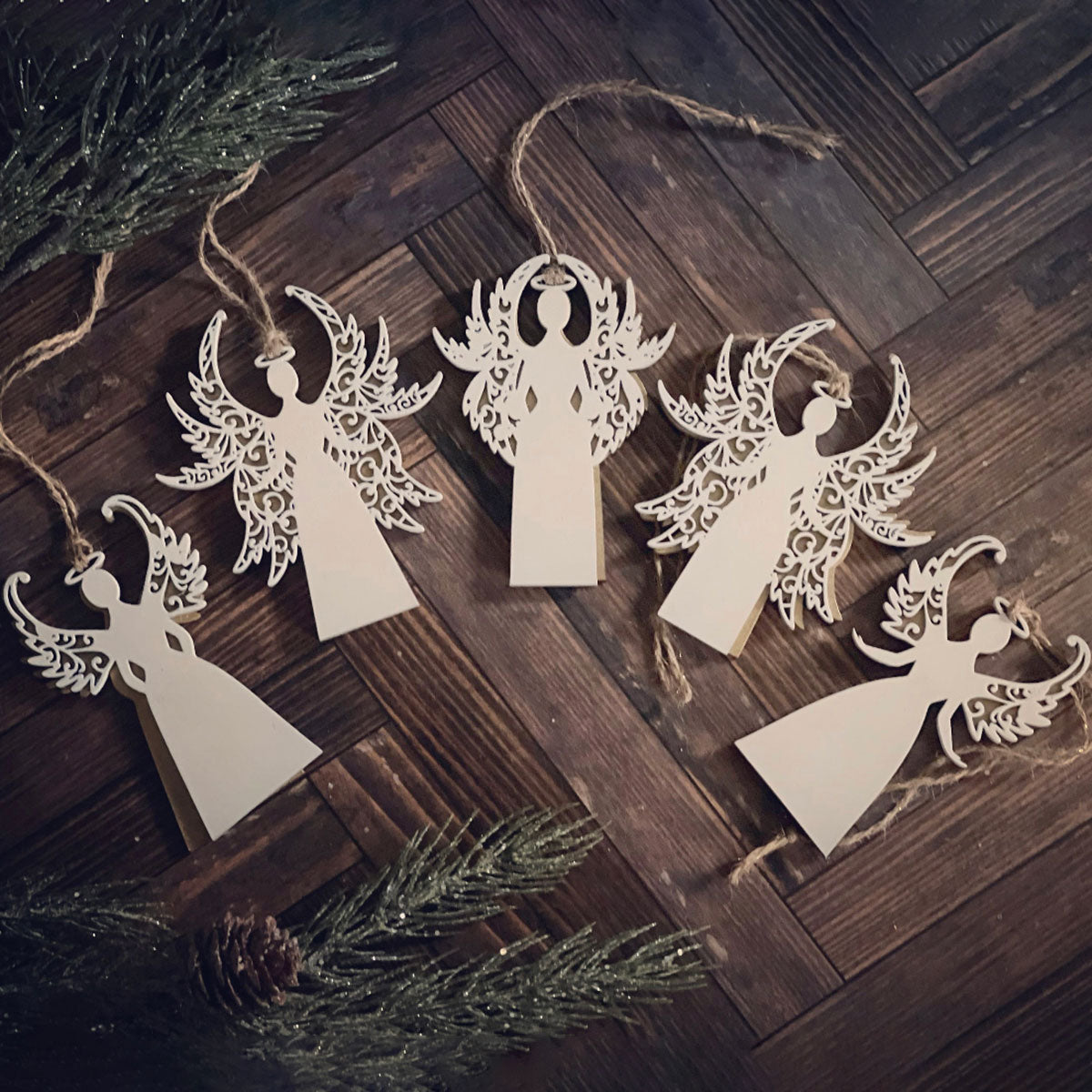 A beautiful way to adorn your tree this holiday season. These laser cut layers hang from their halos. Paint them white or gold for an elegant look. Cut them from proof grade medium draft board or go natural with medium basswood plywood, maple, or walnut. These can be double or single layers depending on your preference. They fit on a single layer of material. These make great gifts or a nice addition to your small business. Can engrave names to honor those who have passed or add a poem. Personalize these how you'd like. Happy crafting!