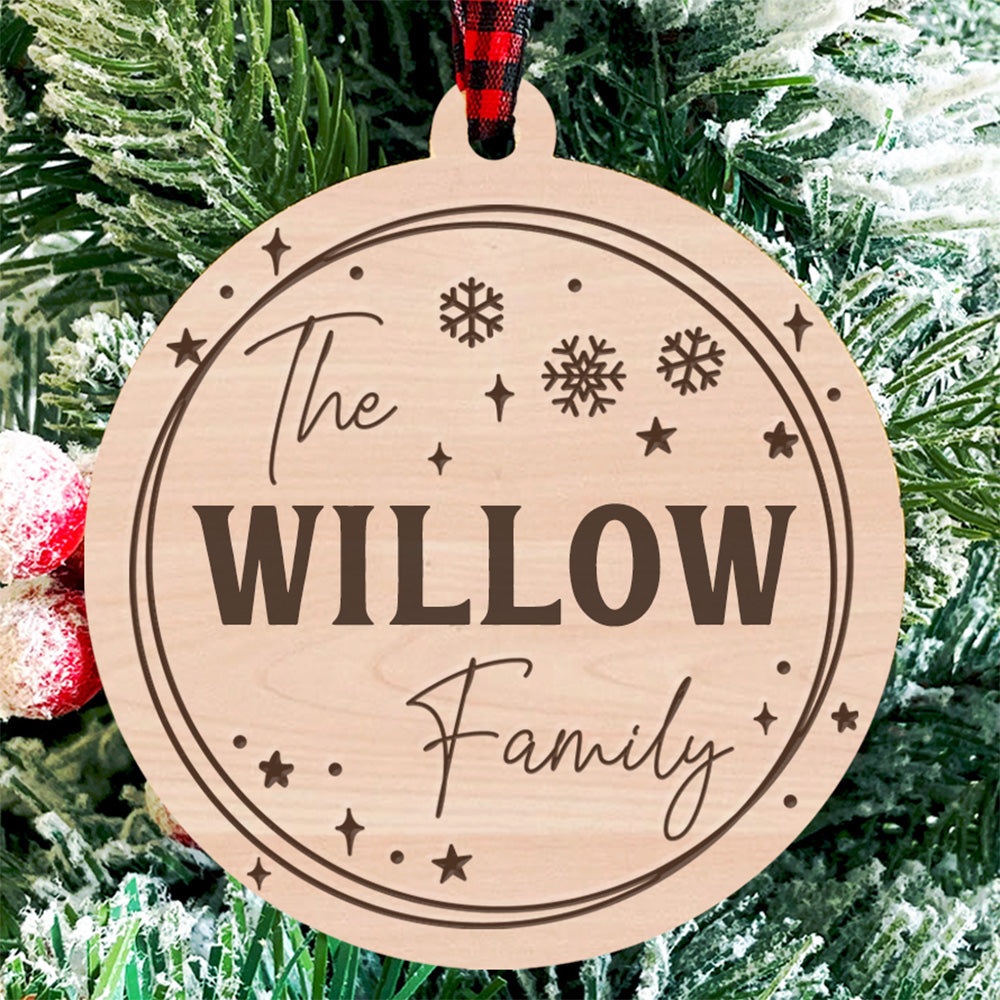 This digital file offers a Personalized Family Name Christmas Ornament design with delicate snowflakes, perfect for laser cutting. Customize with a family name to create a unique ornament, ideal for adding a personal touch to holiday decor or gifting to loved ones. Compatible with various laser cutting machines, this file helps you craft a beautiful keepsake for the Christmas season.