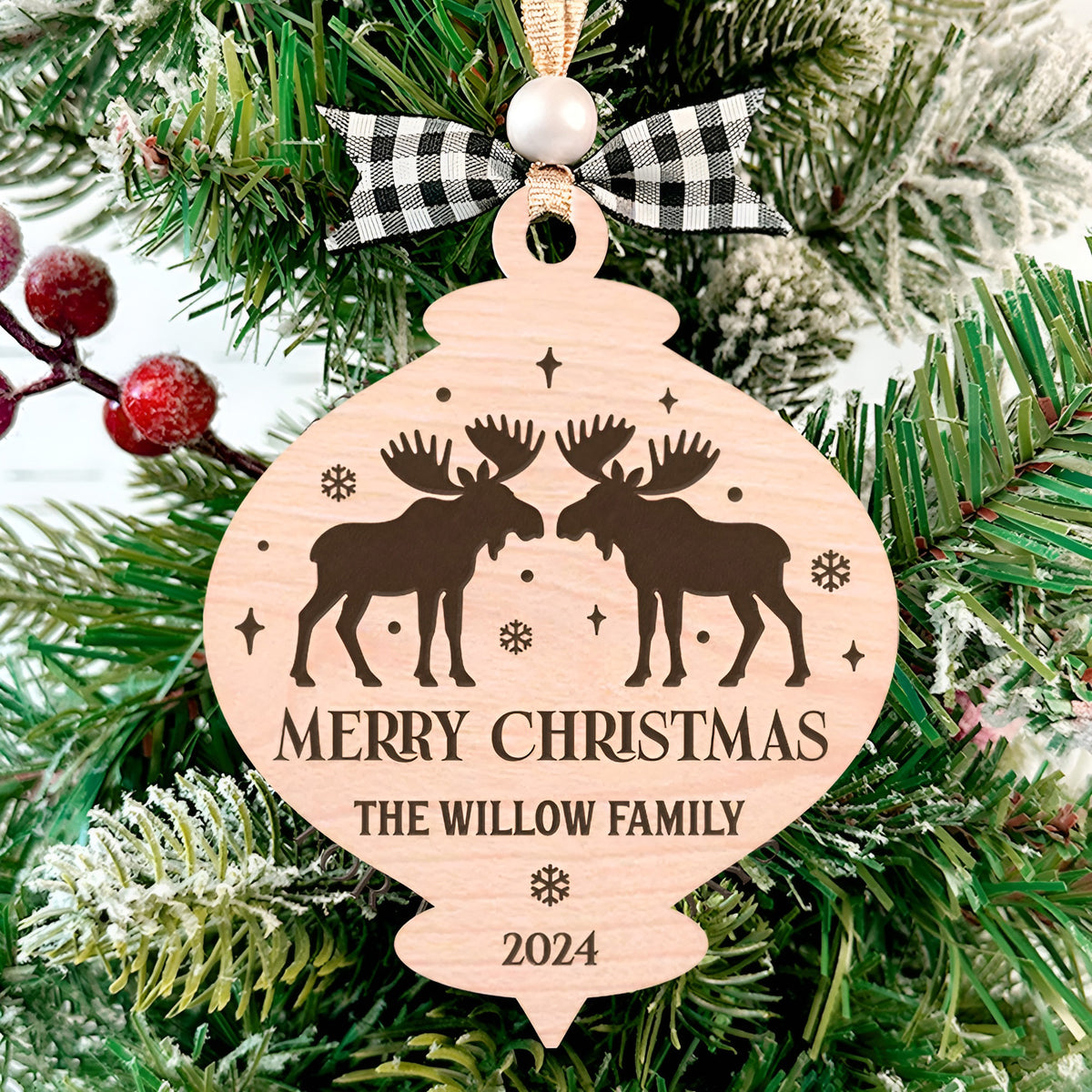 Personalized Family Woodland Moose Christmas Ornament