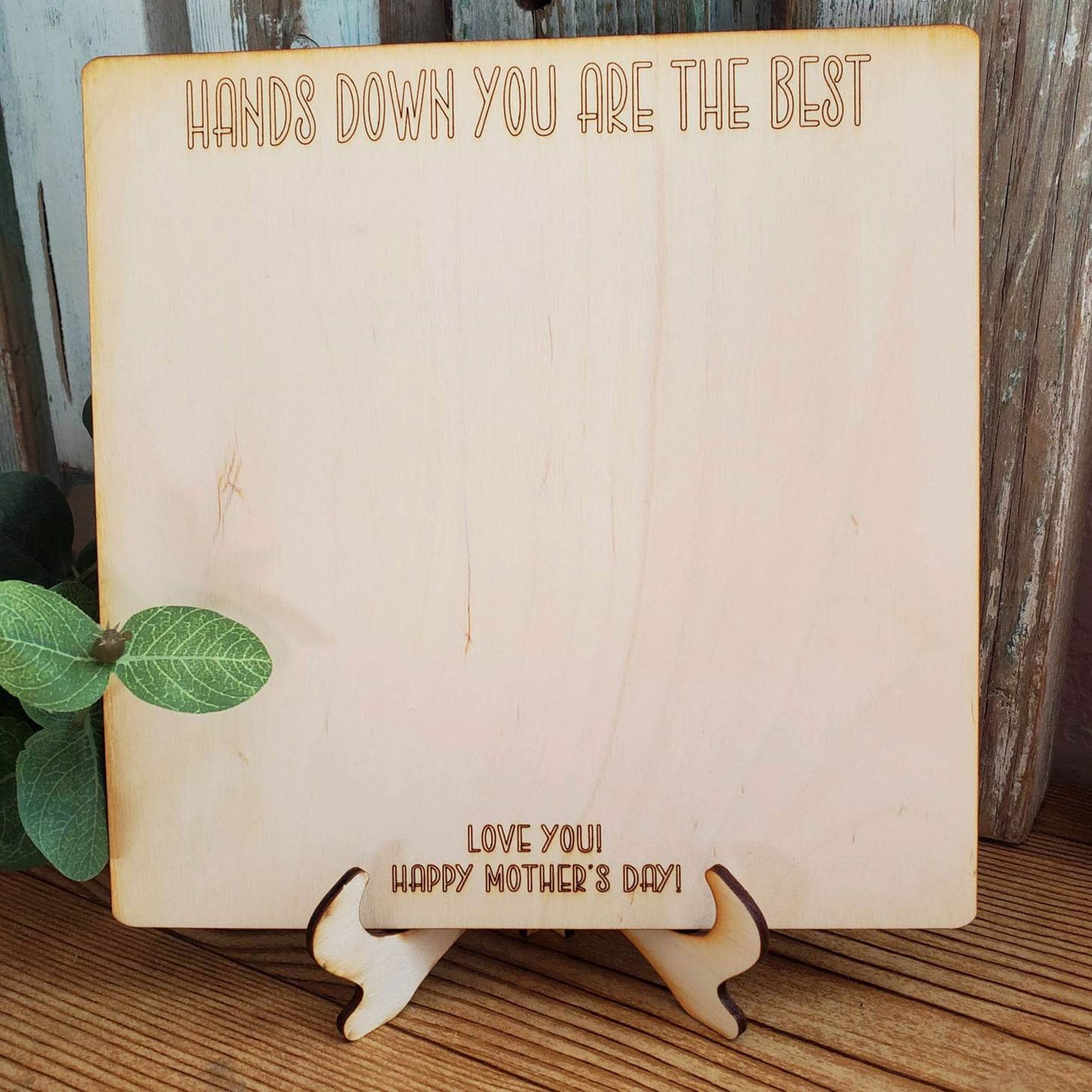 This laser cut sign is perfect for Mother's or Father's Day. It's very easy to customize to your needs and the kids will love adding their own hand prints to the sign. To save time, you can choose to score (or engrave) the words using the laser cutting technique.