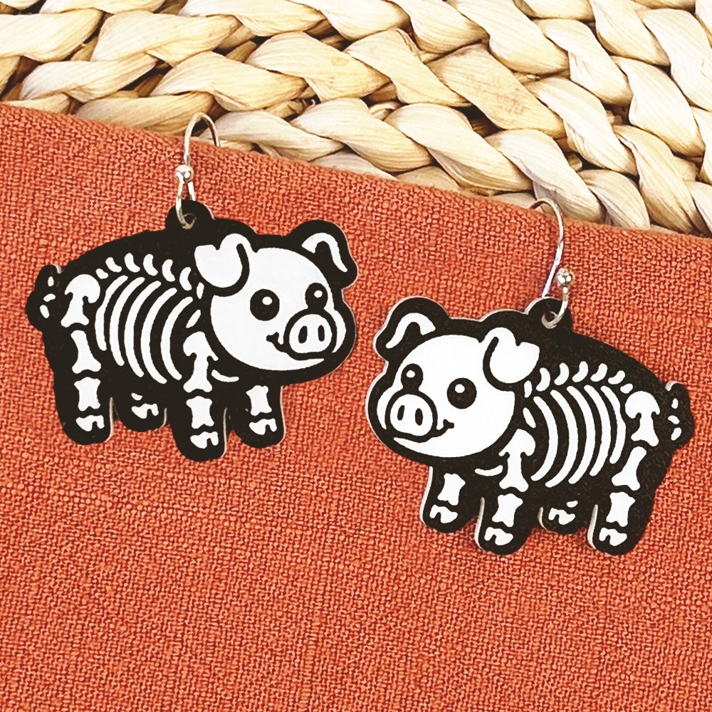 These adorable Pig Skeleton Earrings bring a spooky yet charming touch to your style, perfect for Halloween or year-round wear. Laser-cut, they are easy to wear and make a statement.