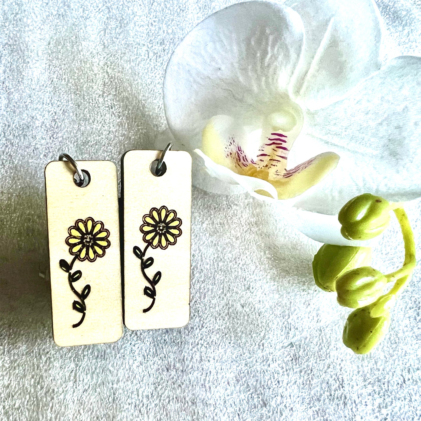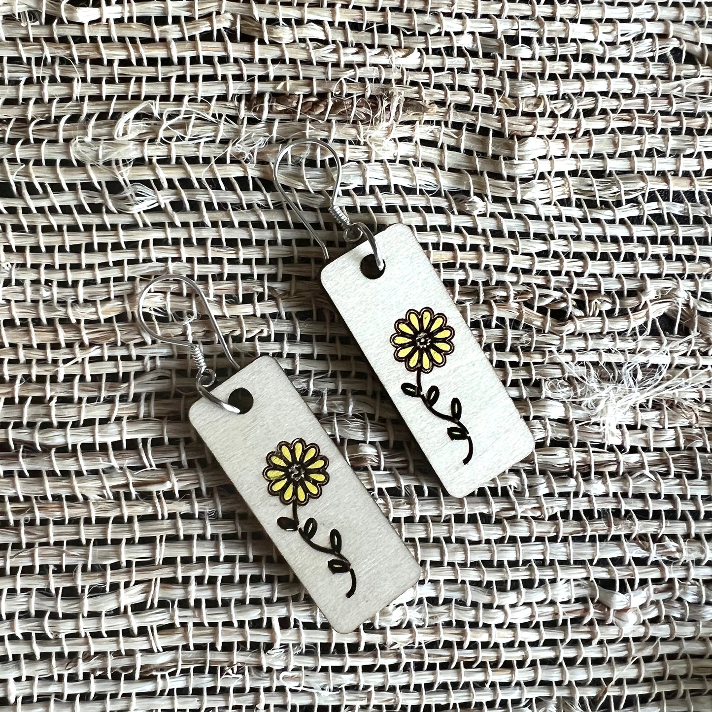 Pretty flowers, green leaves, and soft breezes are all things that make for a happy day. Here is a way to catch all of that in these simple laser cut flower earrings. Make a pair for yourself or a pair for a friend. Great quick birthday gift. Prints in three minutes.