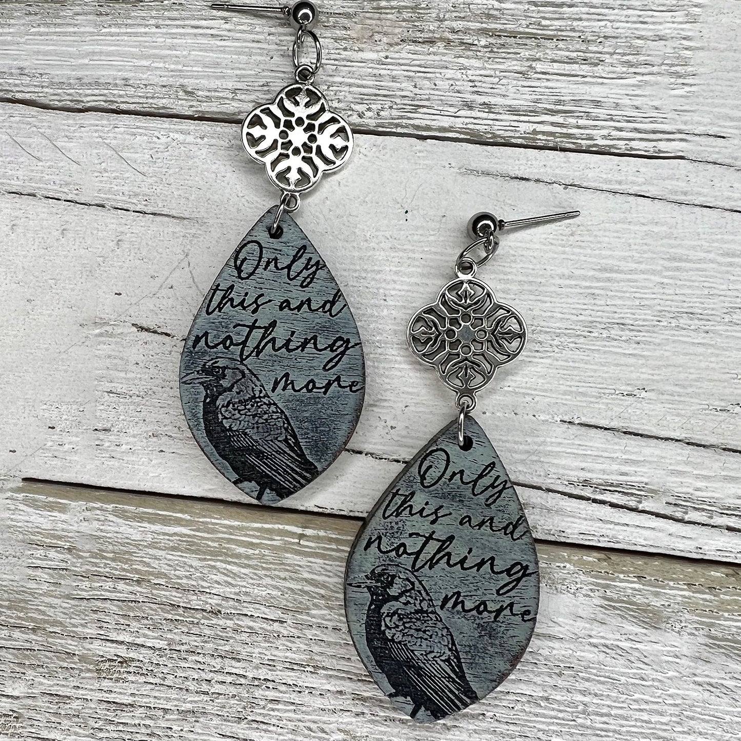 Raven Teardrop Earrings - "Only This and Nothing More" Literary Earrings