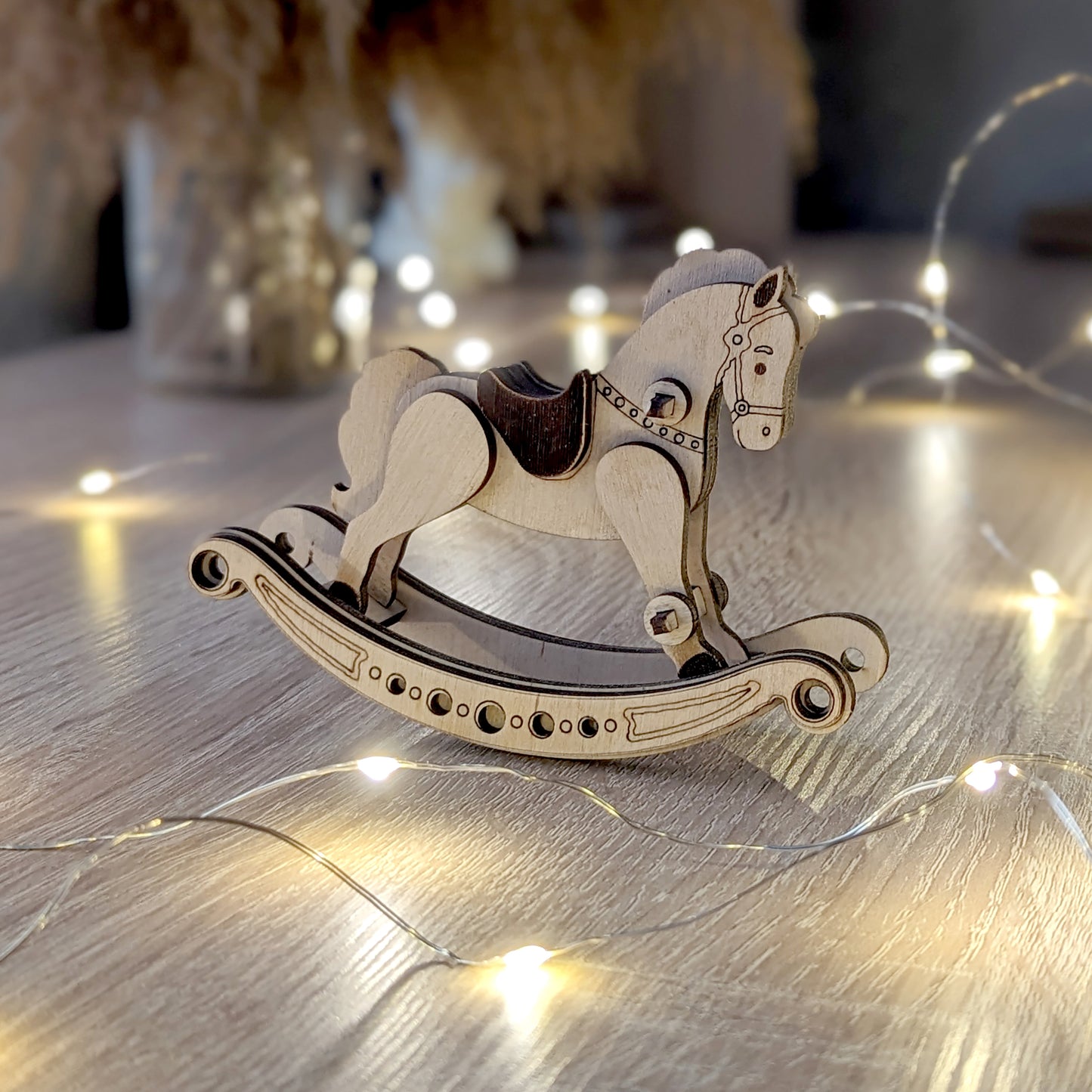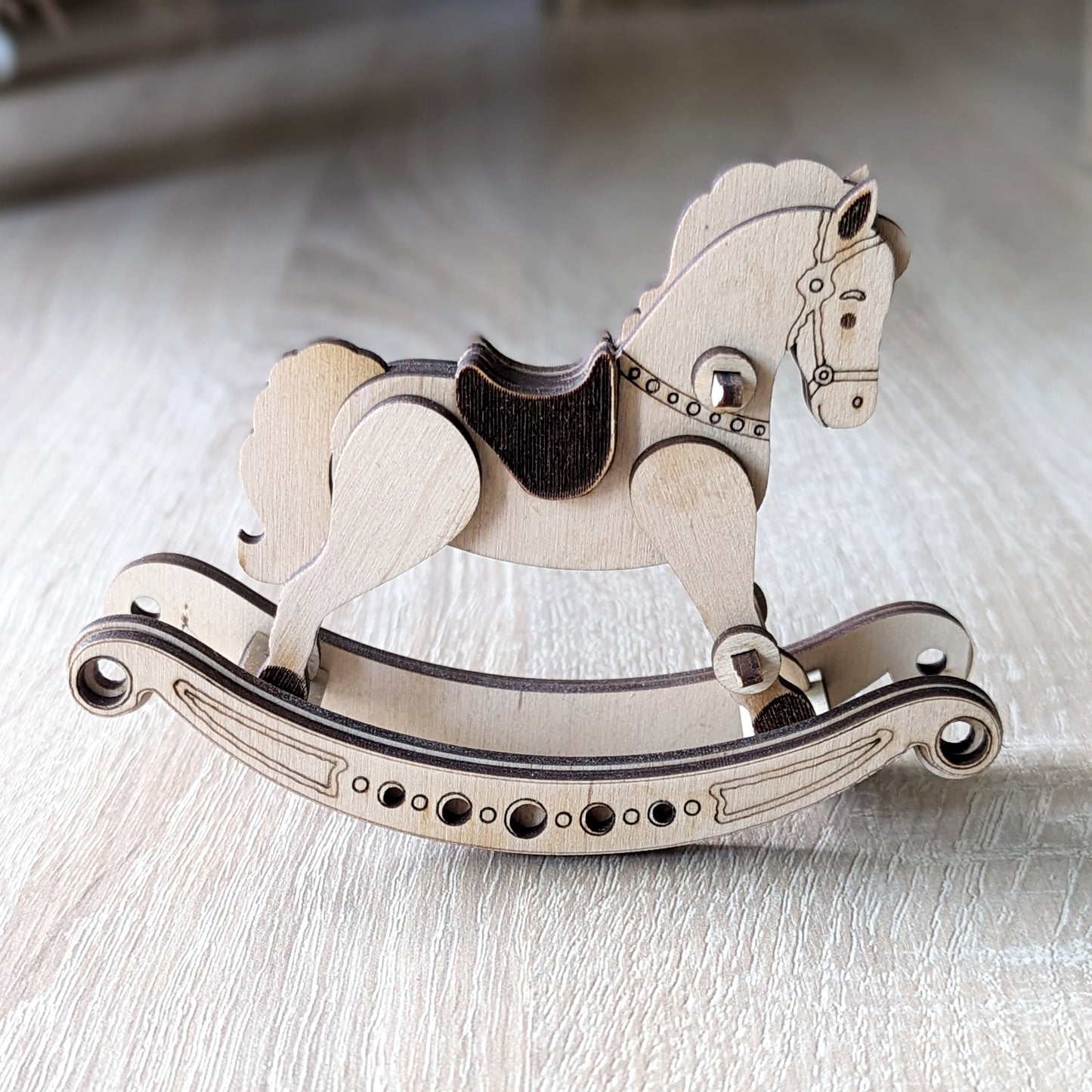 The Rocking Horse is a timeless and captivating addition that captures the essence of traditional play. Crafted with precision and attention to detail, this laser-cut plywood model brings a touch of nostalgia to any space. With its graceful design, the Rocking Horse serves as a decorative piece, introducing the charm of classic toys to children and adult alike. Its versatile charm makes it a delightful addition to nurseries, children's rooms, and curated collections. Embrace the classic allure of the Rocking Horse, a perfect blend of craftsmanship and vintage aesthetics.