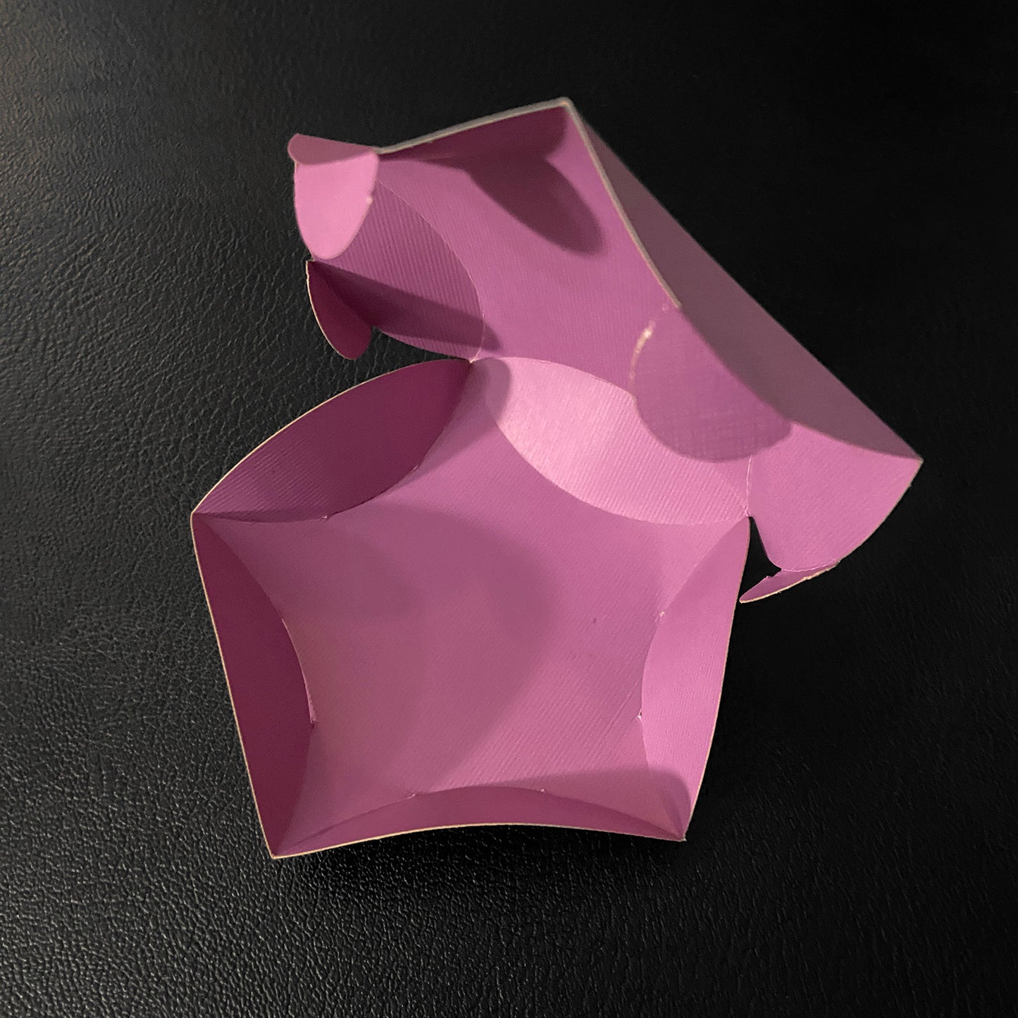 This charming round box is exquisitely formed from cardstock, with a pinched tab closure that adds an endearing touch, making it perfect for tiny gifts or party favors.