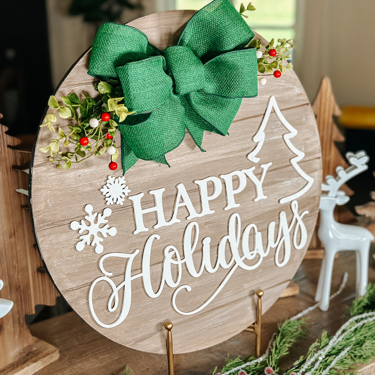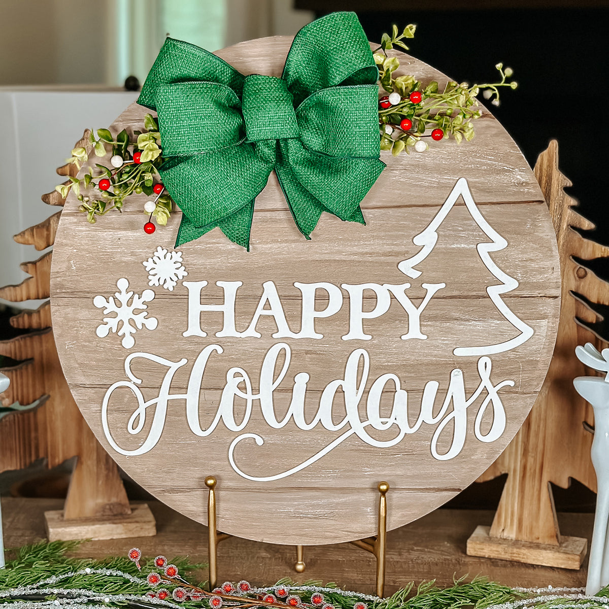 Welcome the holiday season with this beautiful "Happy Holidays" laser cut file! Designed to create a charming Christmas door hanger, this file features festive lettering, a Christmas tree outline, and delicate snowflakes, topped with a decorative bow accent. Perfect for adding a cozy, personalized touch to your holiday décor, this design is versatile for use with wood, acrylic, and other materials, making it a standout addition to any front door or wall. Spread cheer this season with a unique holiday decoration that’s fun to craft and beautiful to display!
