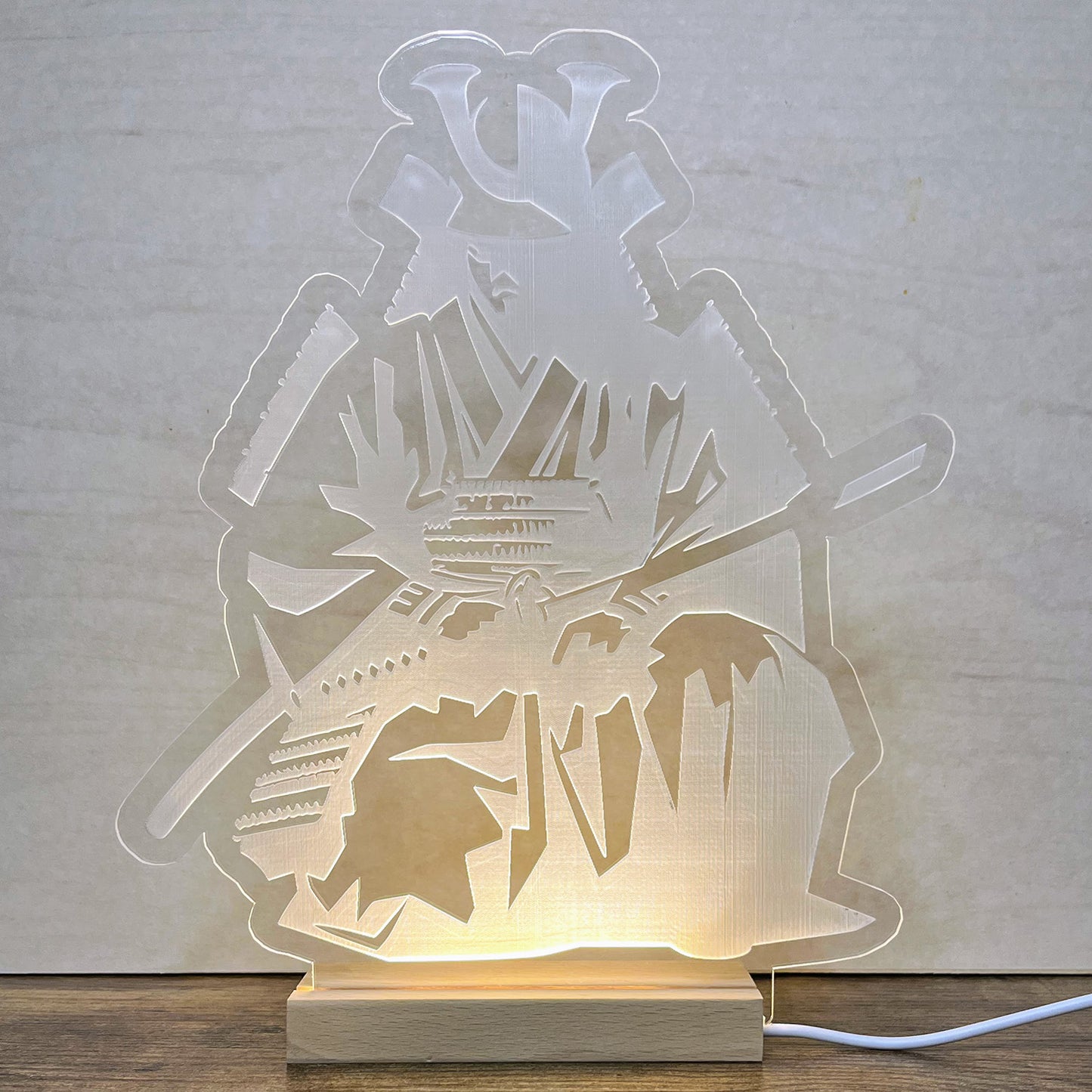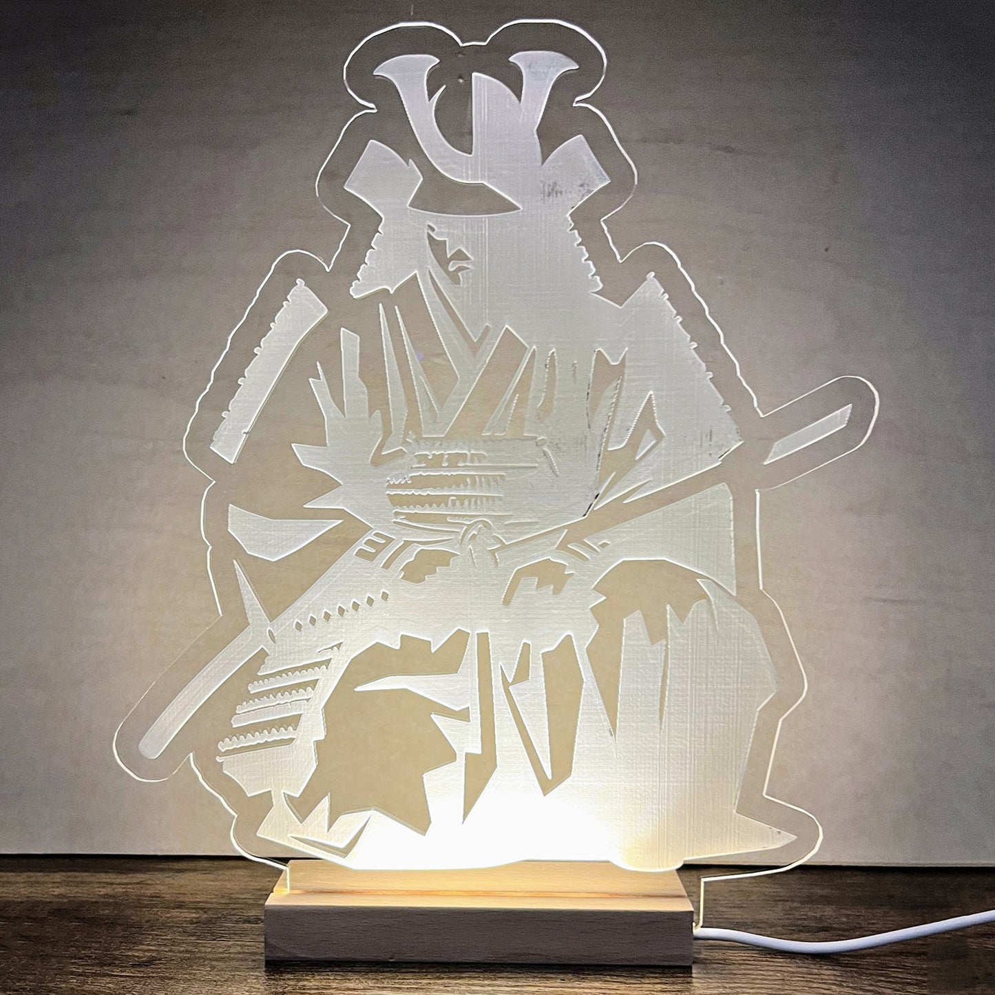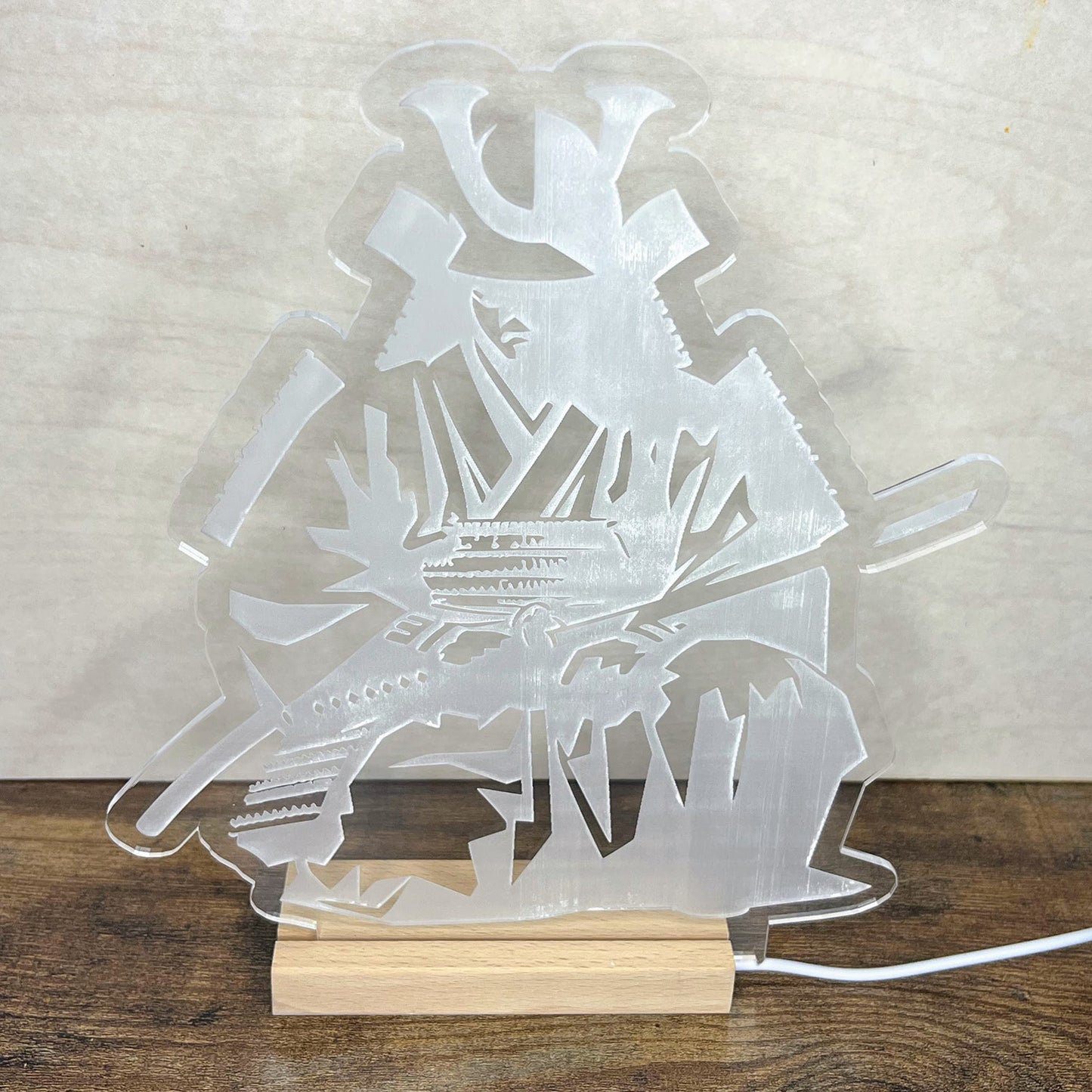 Celebrate the traditions of Feudal Japan's honorable warrior, the Samurai. This nightlight will stand guard to protect you, your lands, and your dreams each night. This large acrylic nightlight insert fits perfectly into an LED light base with a slot measuring 4.33 inches by 0.2 inches.