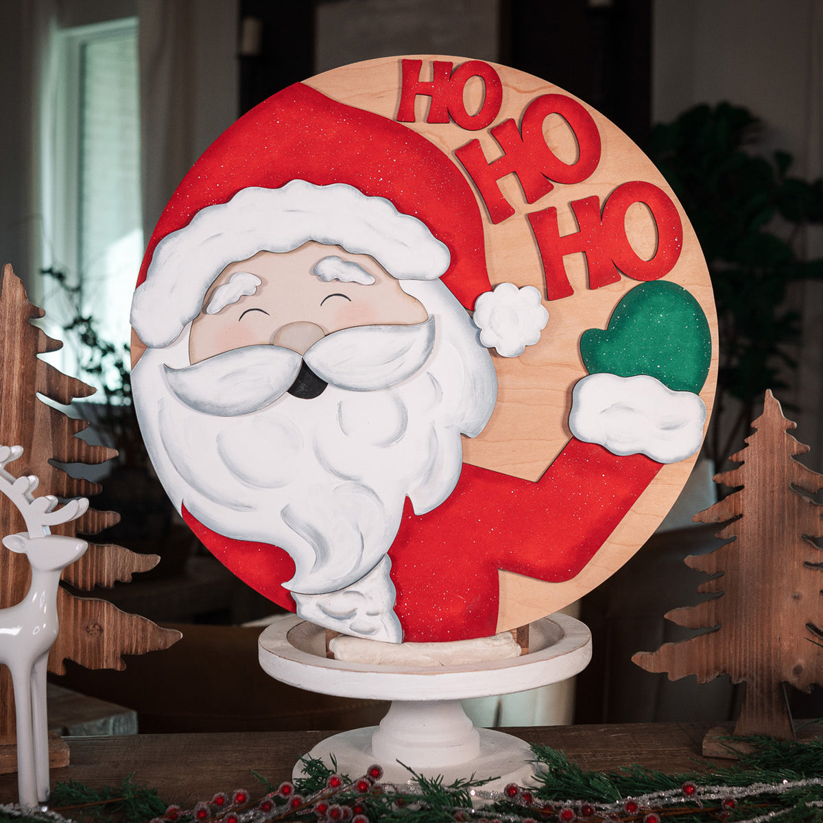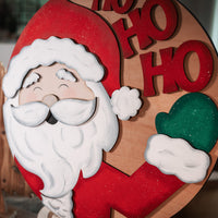 Santa Claus HO HO HO Round Christmas Door Hanger