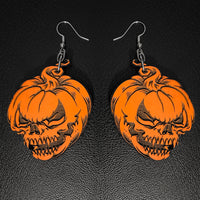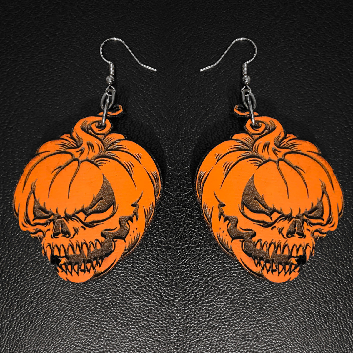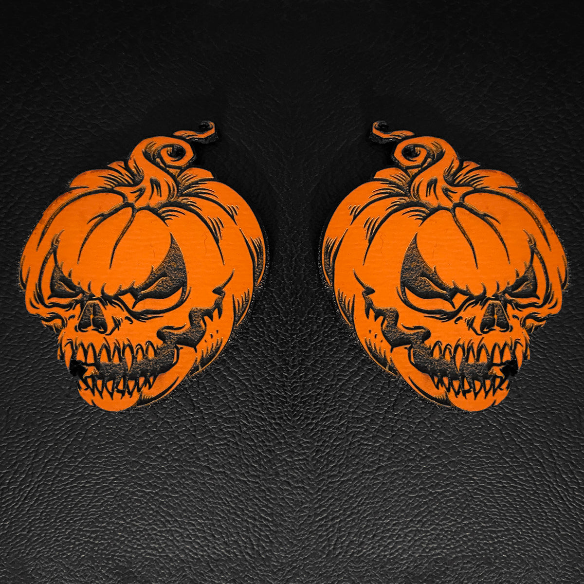 Strike the perfect Halloween mood with these pumpkin fang earrings, laser-cut from medium hardwood. Their spooky yet stylish design is sure to add a delightful bite to your outfit.