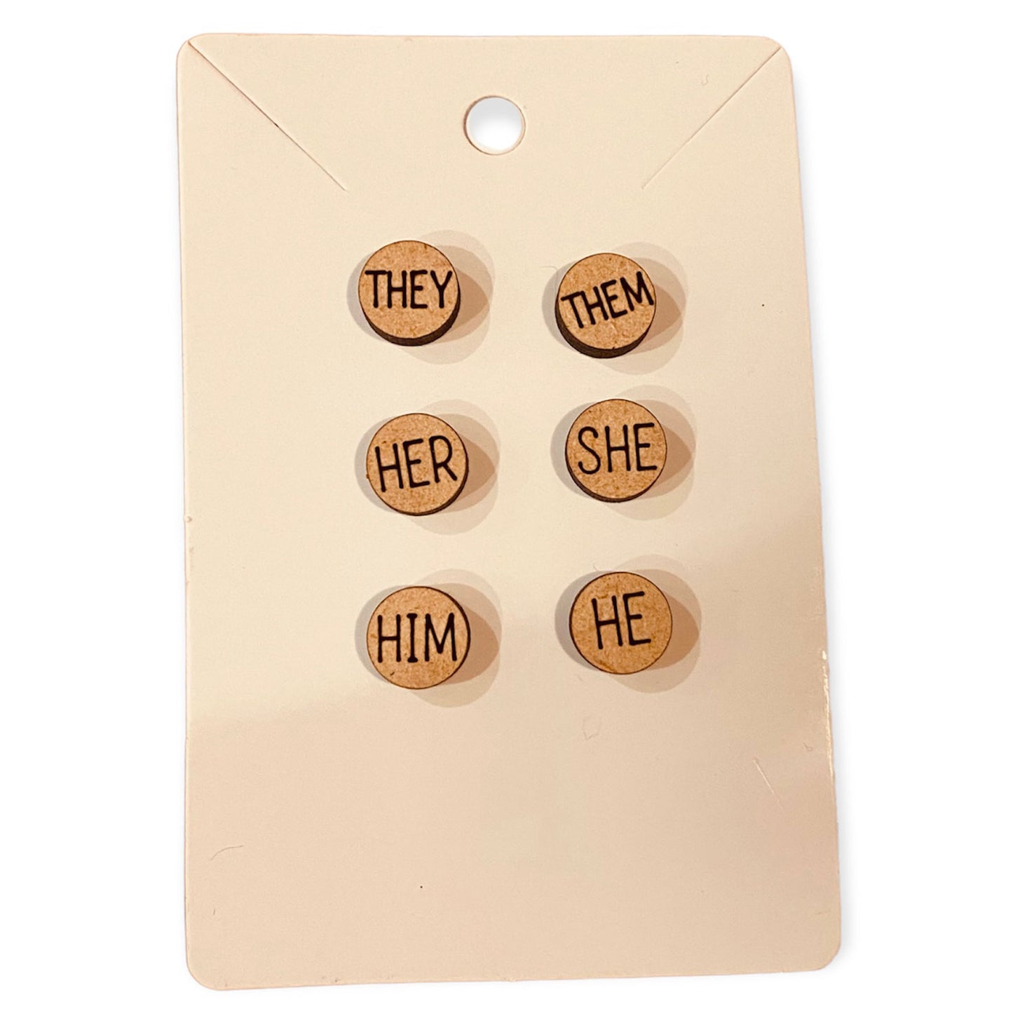 Simple Pronoun Pride Affirmation LGBT LGBTQ Stud Earring Set