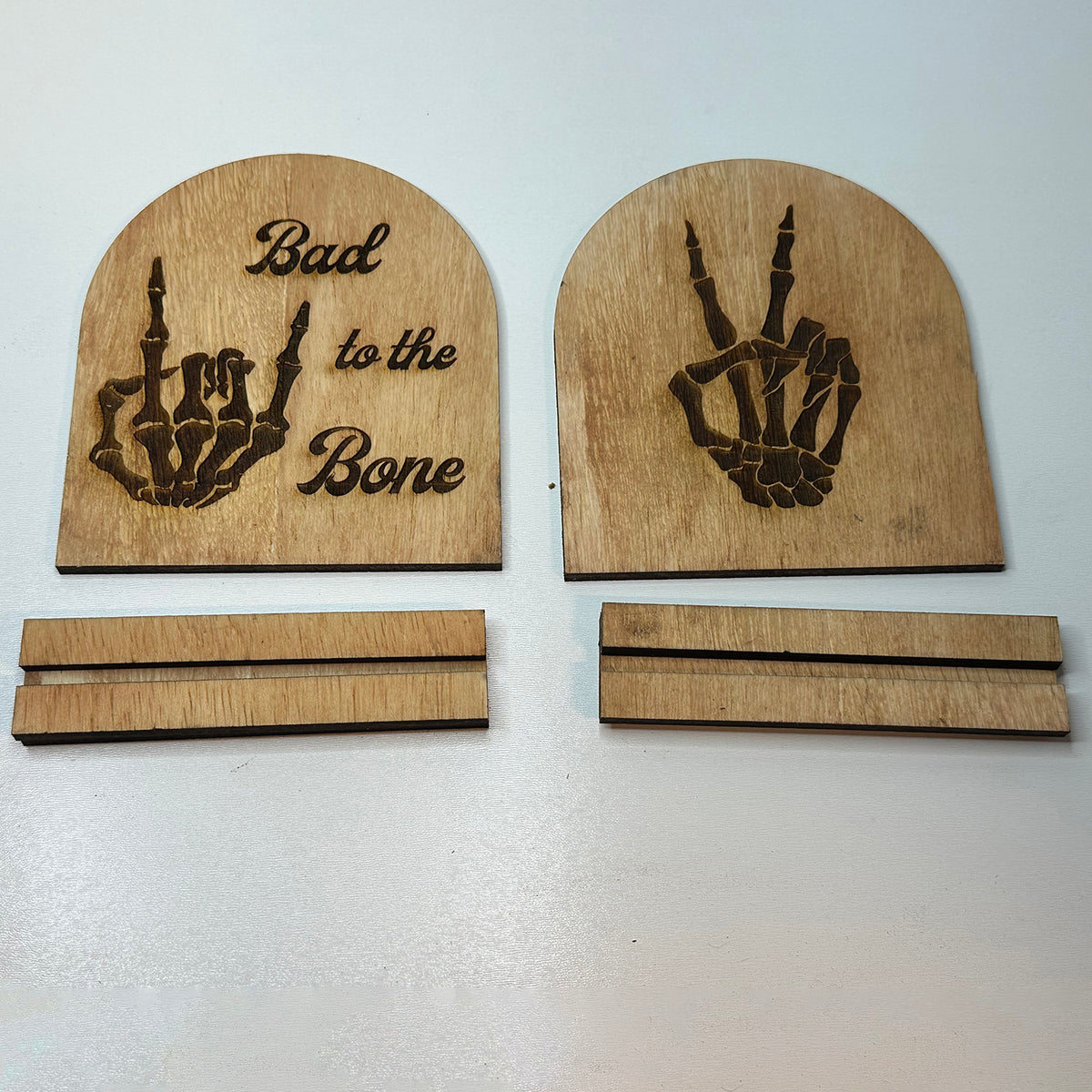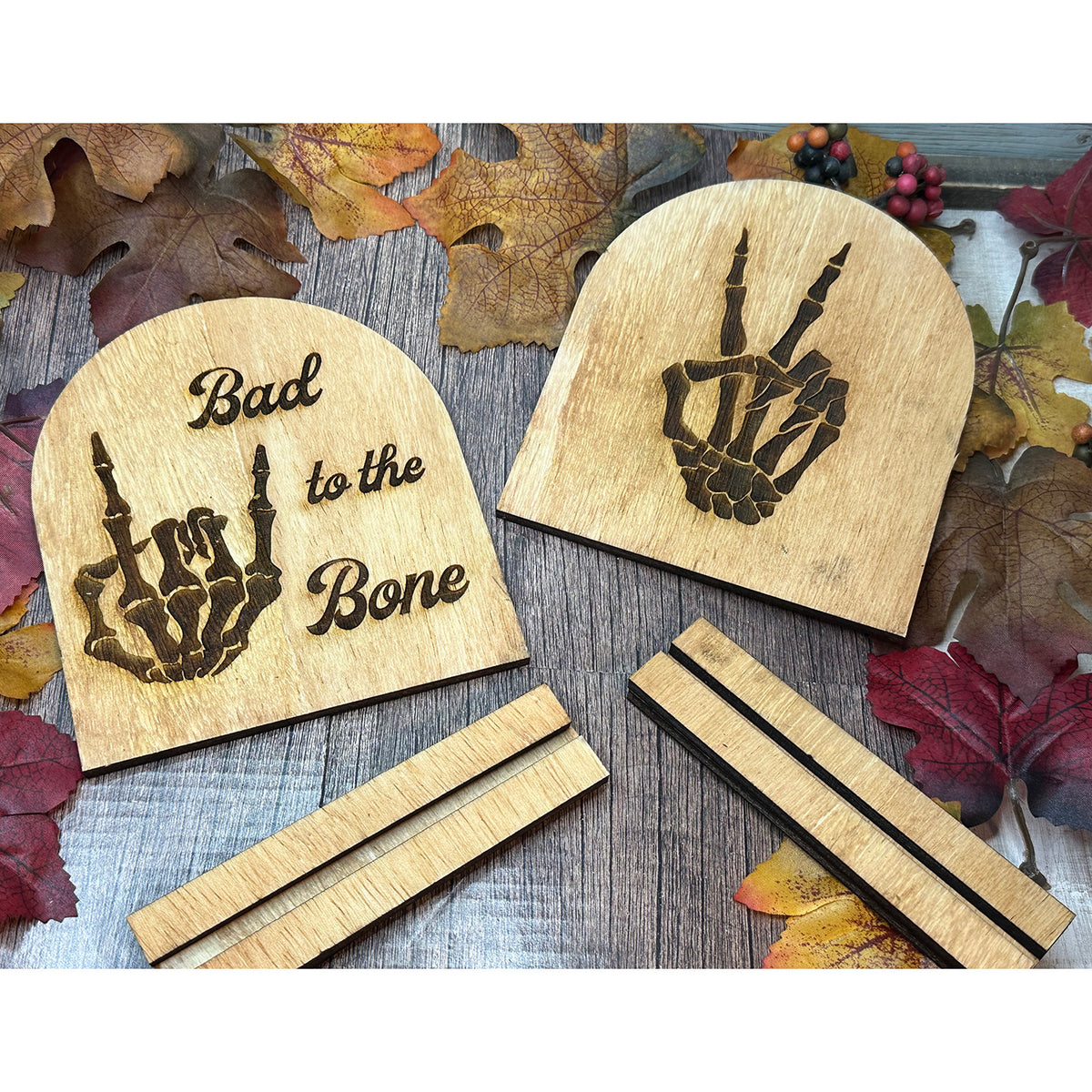 Skeleton Peace Sign / Bad to the Bone Halloween Decor Set: Table Decor or Tiered Tray Decor