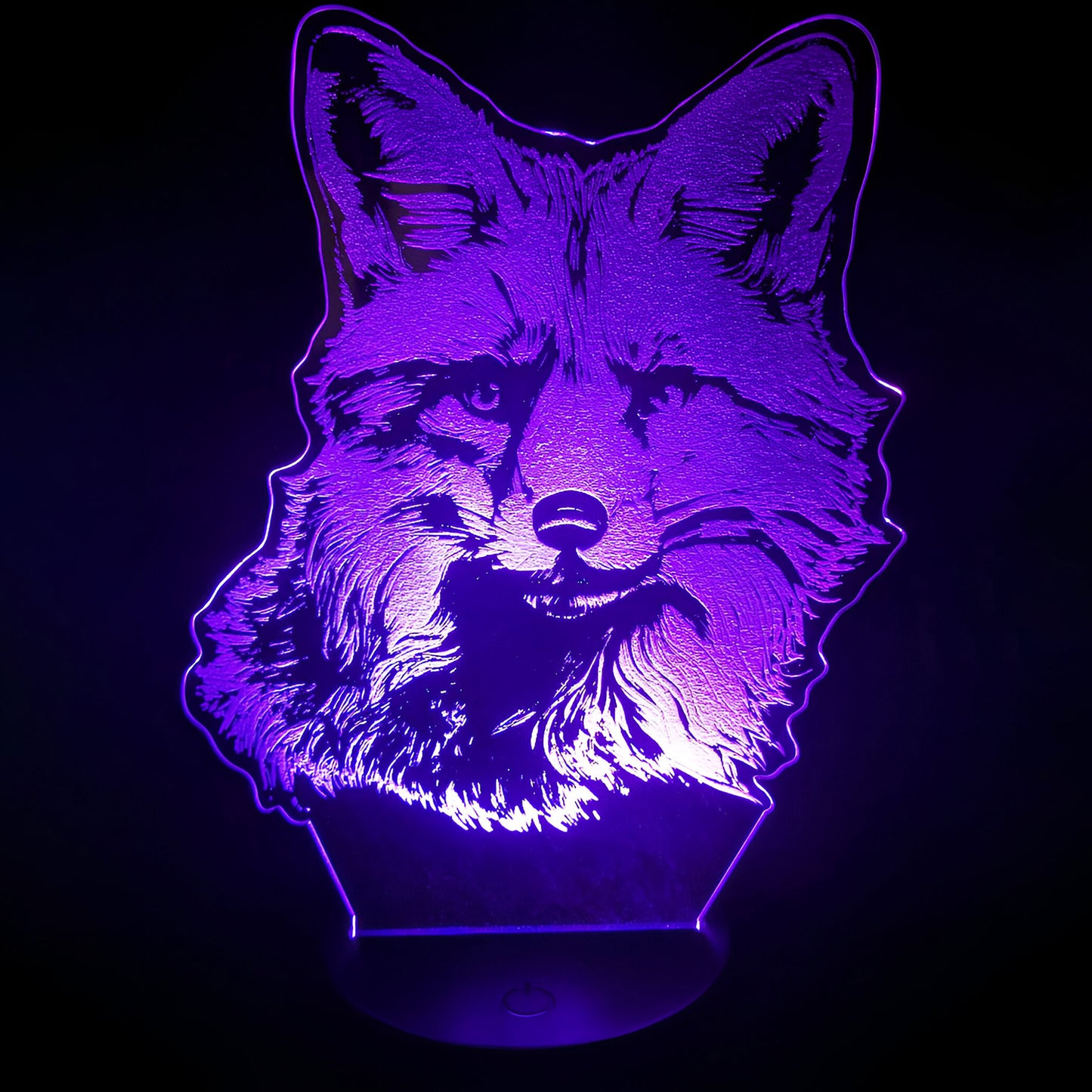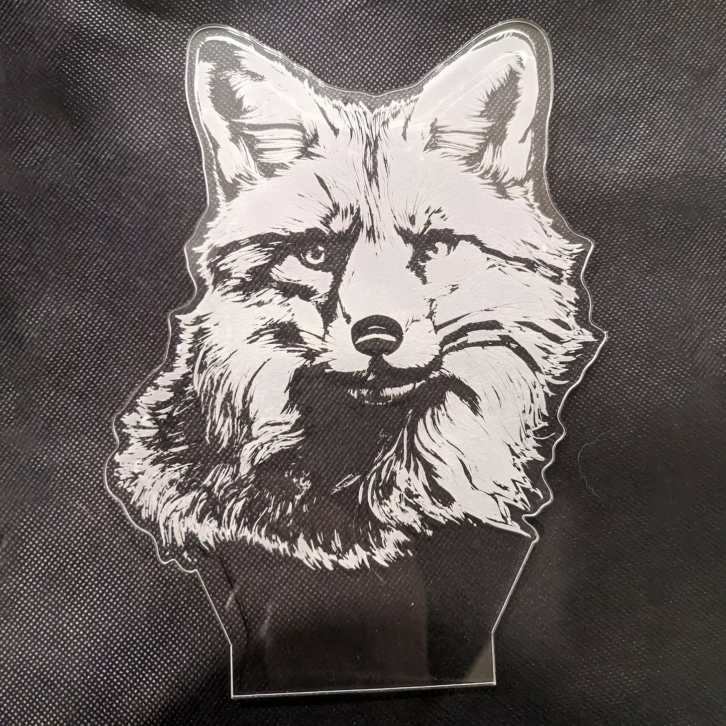 Illuminate your space with the captivating charm of this laser-engraved acrylic insert featuring a cunning fox. The intricate details of its fur, whiskers, and piercing eyes bring this sly creature to life. The soft glow of the LED night light base adds a warm and inviting touch, making this insert a unique and eye-catching addition to any room. Let the fox's presence guide you through your dreams.