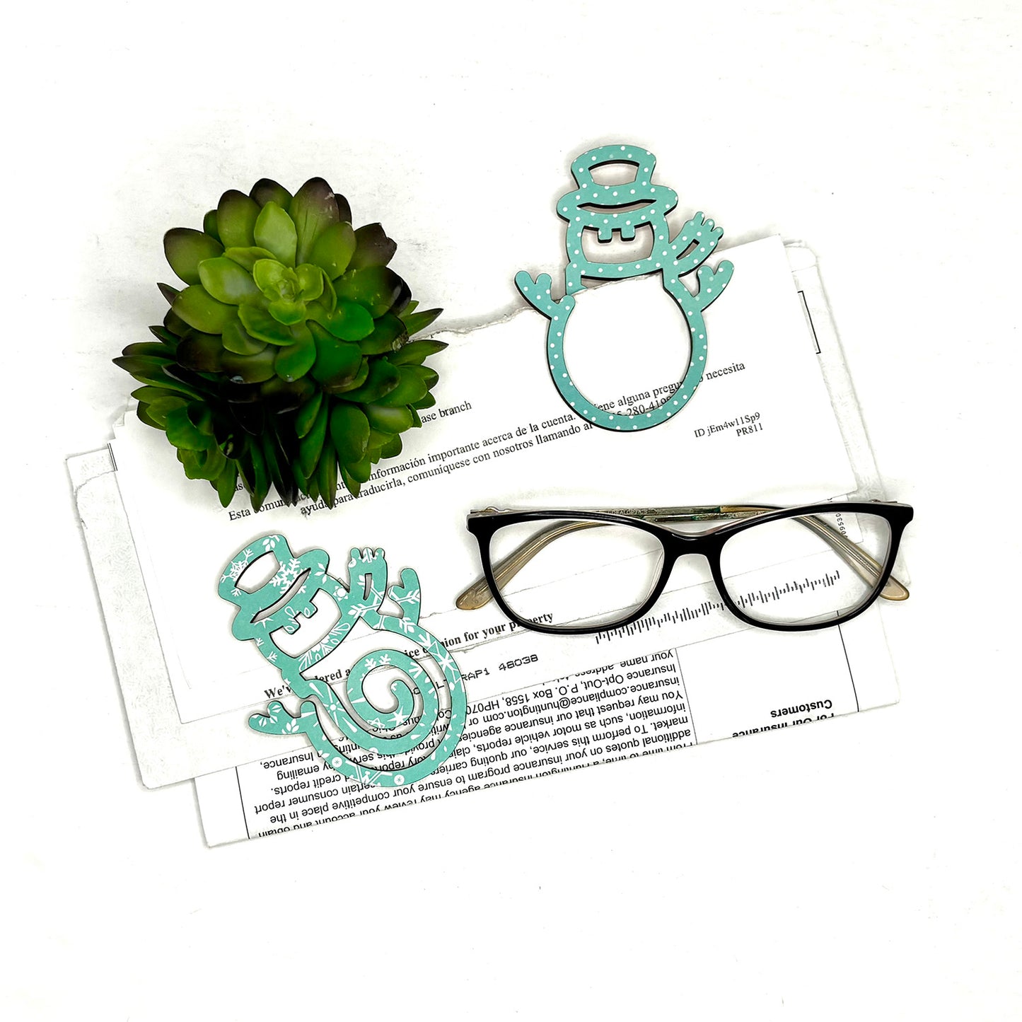 Snowman shaped bookmark laser file. These are great book-lover gifts and are perfect as stocking stuffers! Includes backer files that can be scored and cut on the laser on poster board using the 80 lb card stock paper Glowforge setting. Great use for scrap busters! Slide them into a self-sealing cellophane bag and you've got a great little add-on product that sells well at markets, bookstores, or as a promo gift. To create a patterned look, mod podge scrapbook paper to 1/8" wood, let dry, mask with low tack masking tape and cut.