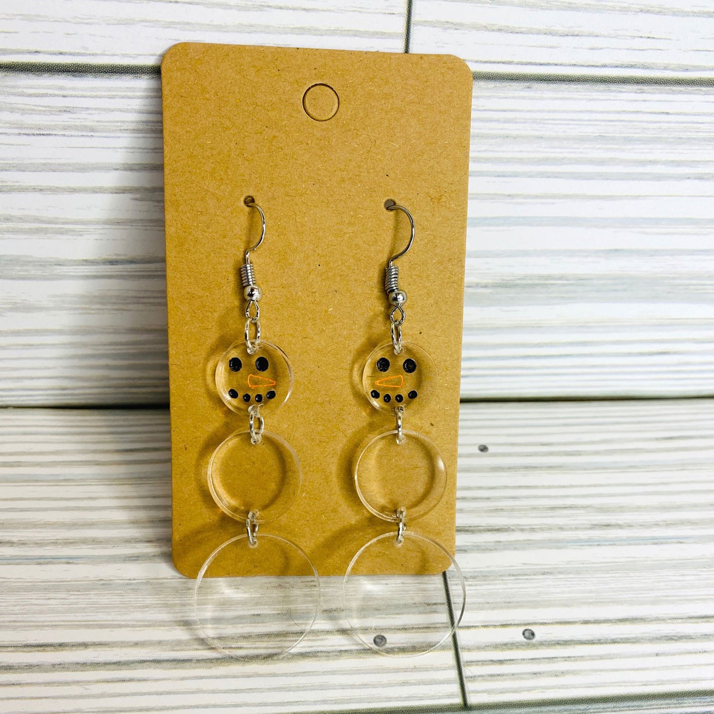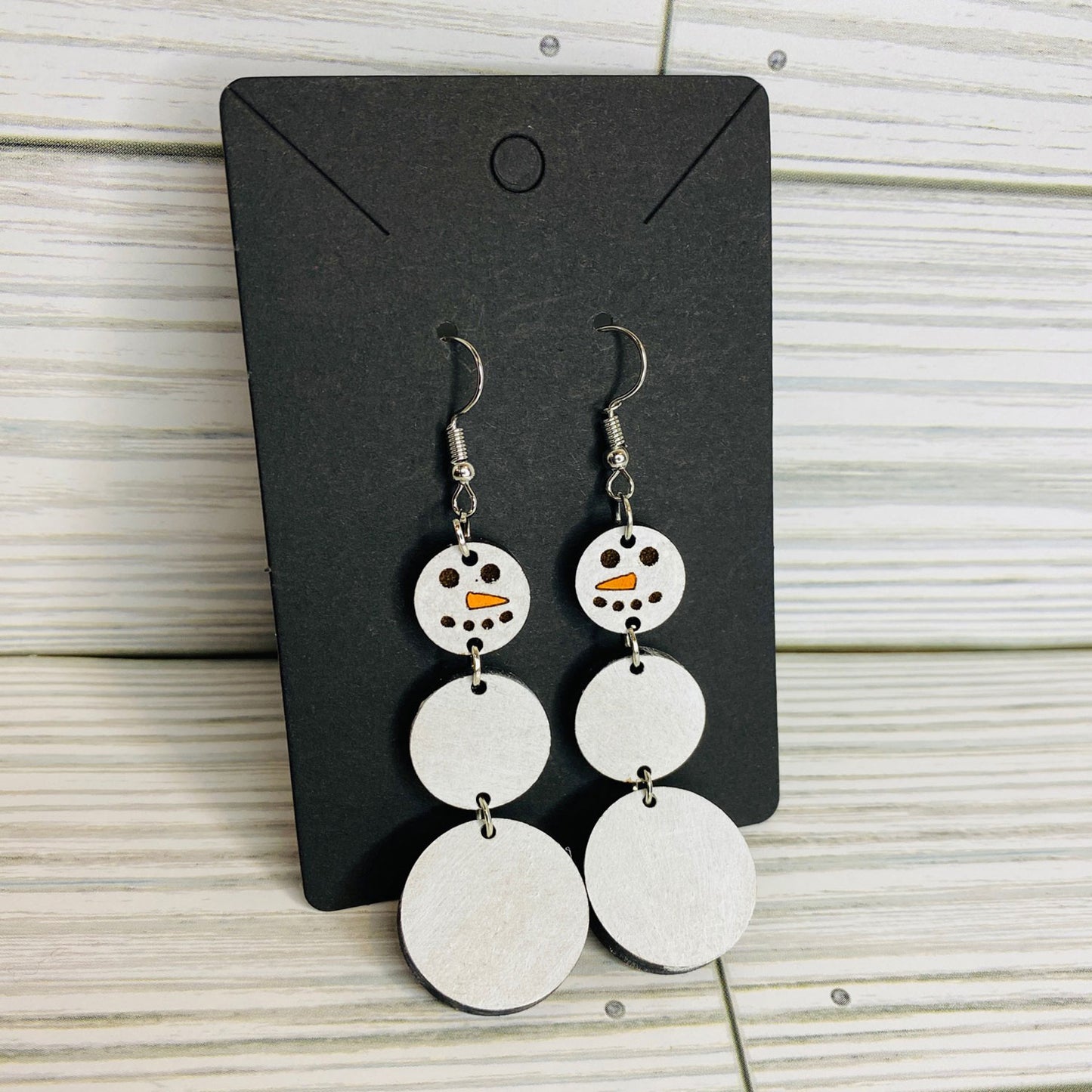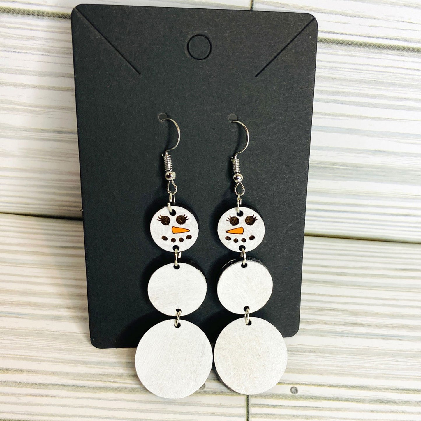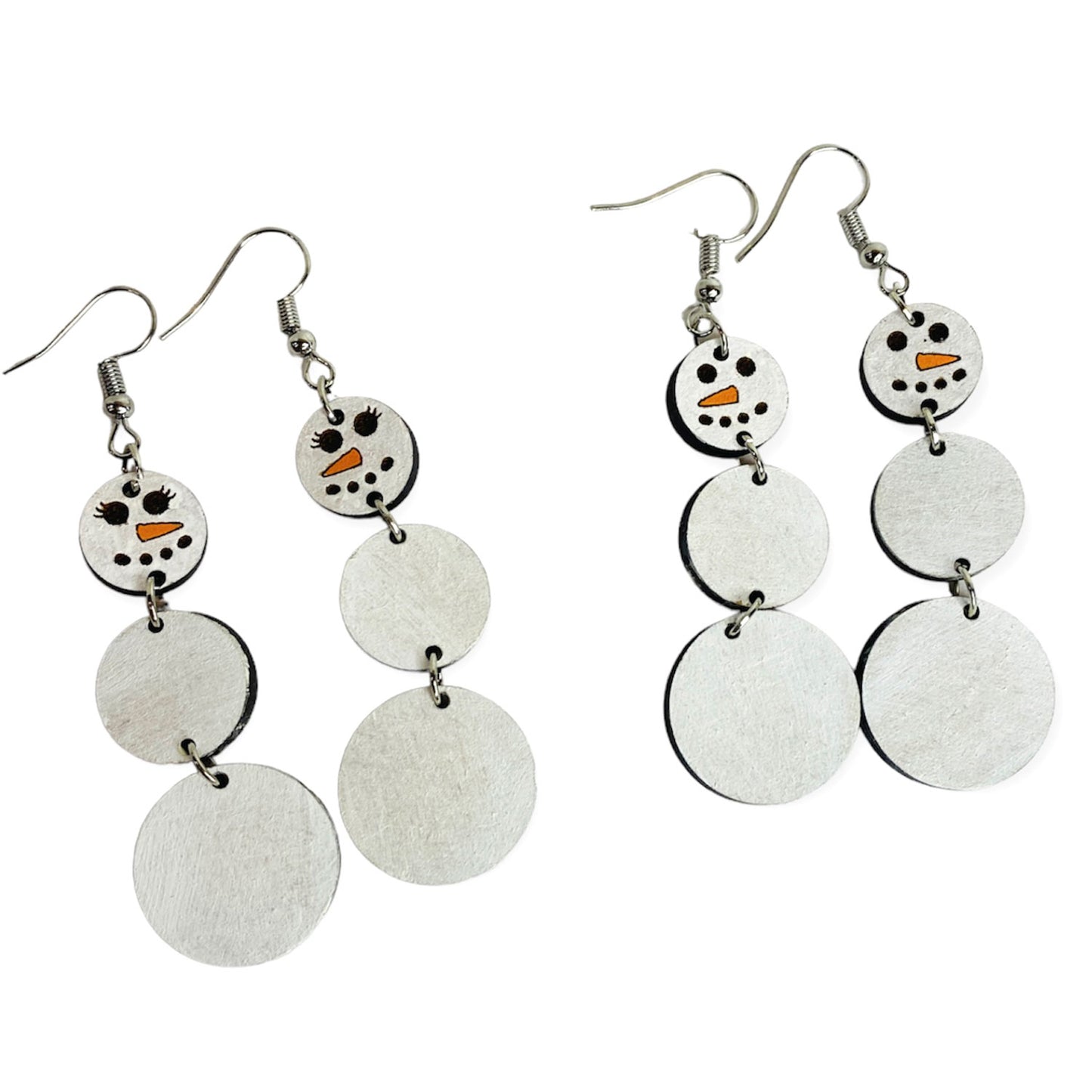 Snowman Snow Woman Tiered Winter Dangle Earrings Set
